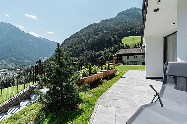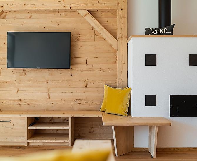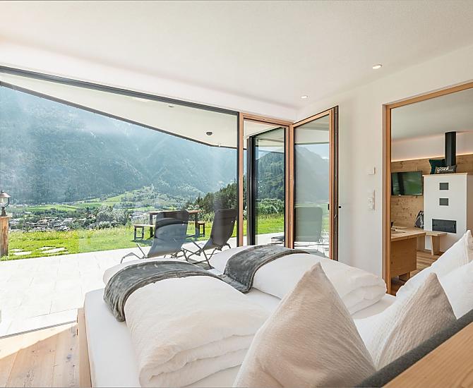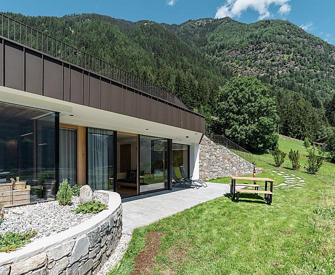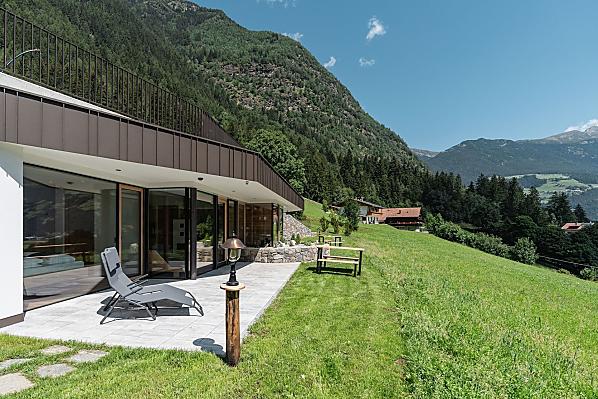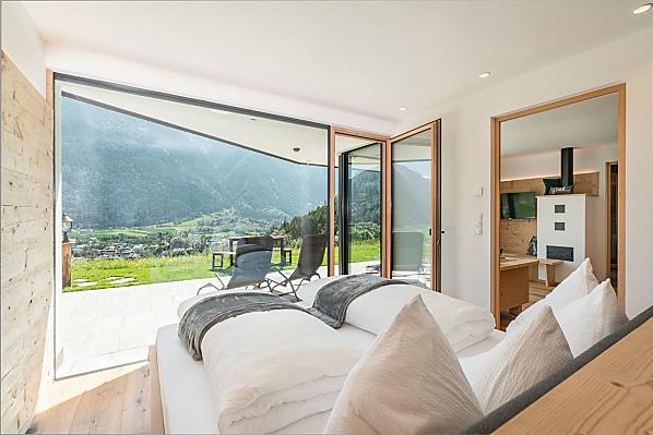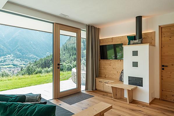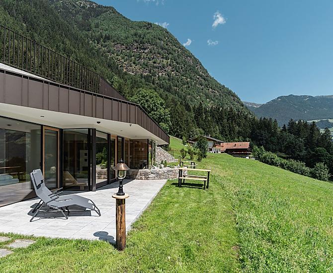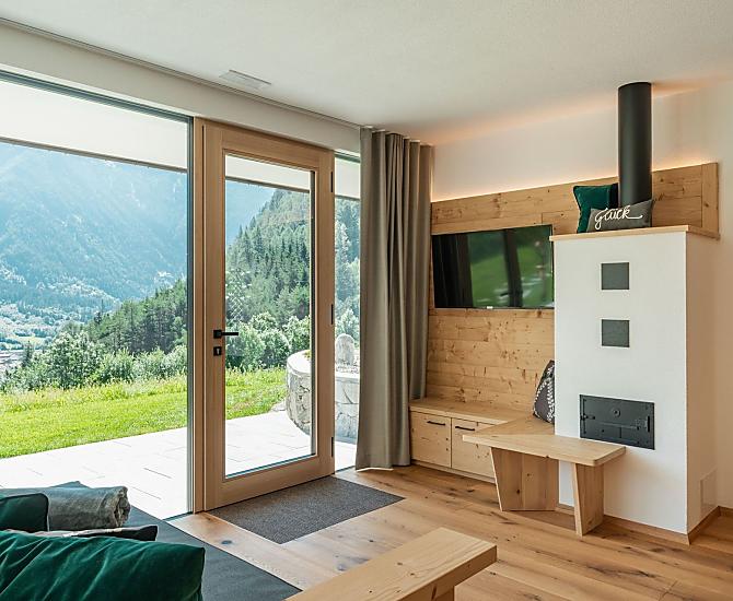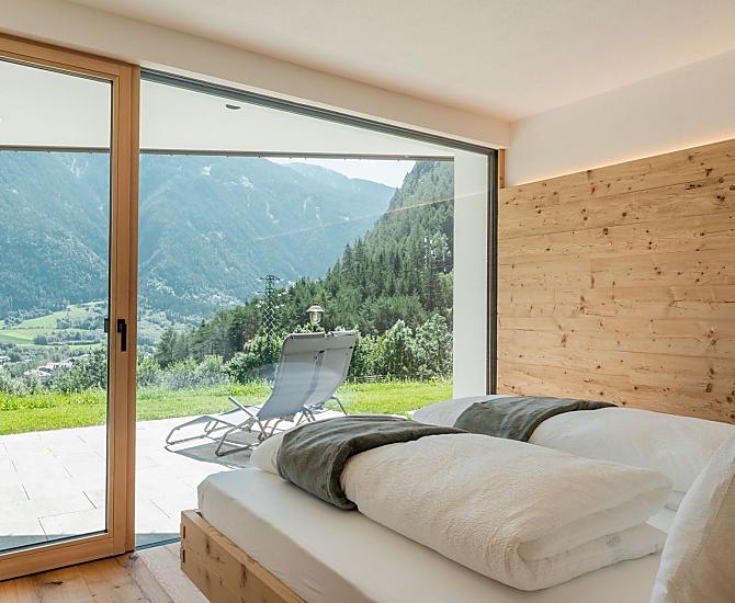 Our farm is located 930 m slightly above Mühlen in Taufers. We are surrounded by meadows and forests and yet the village centre can be reached in just a few minutes by car or on foot. WE keep Tyrolean 'Steinschafe' sheep, which are here with us on the farm all year round. You'll also find our chickens, cats, rabbits, guinea pigs and our donkey Emil We cultivate around five hectares of meadow and one hectare of fields on which we grow maize. Our chalets are nestled in the middle of the meadow - so the landscape and the view of the village and the surrounding mountains can be enjoyed in a carefree manner.
