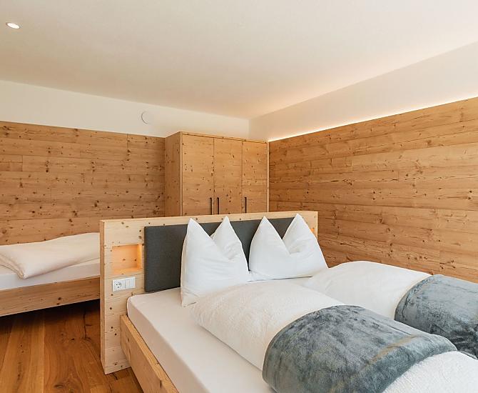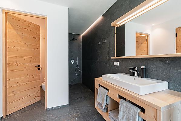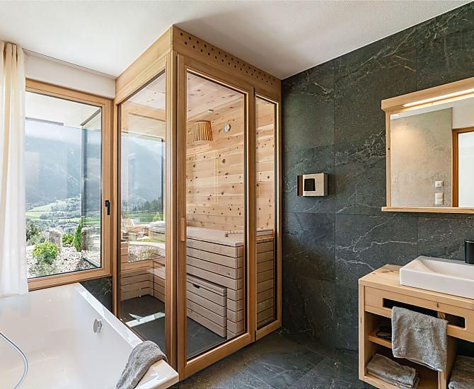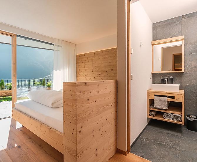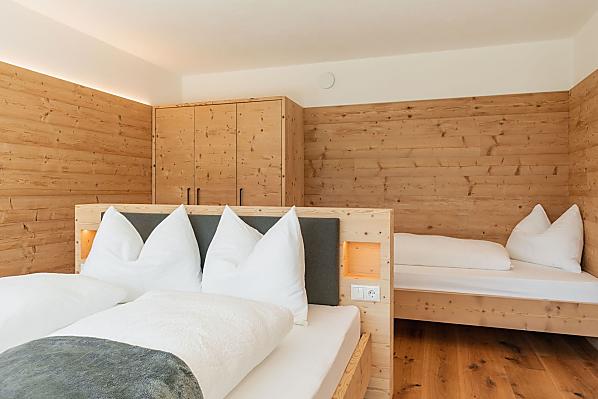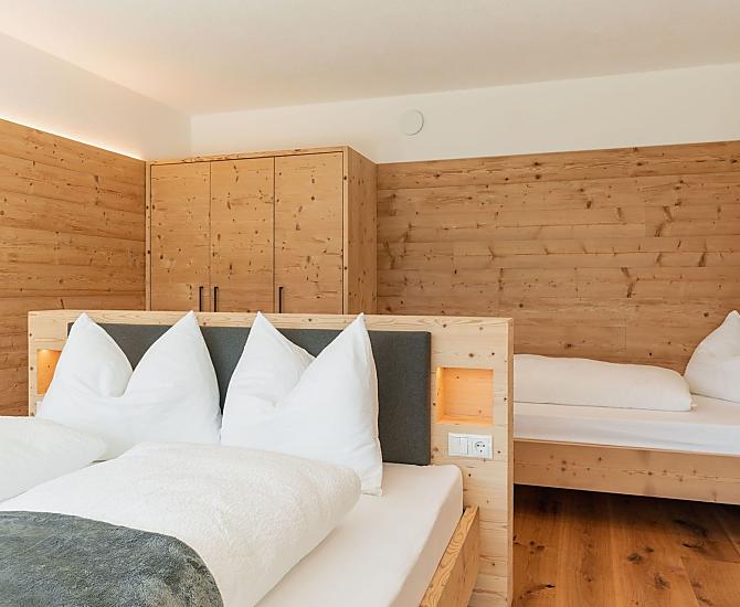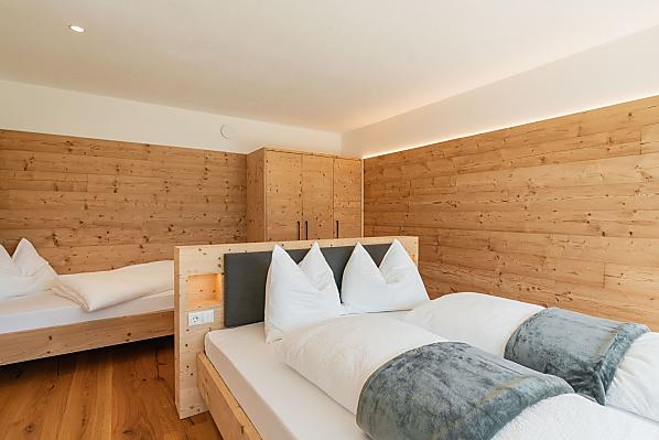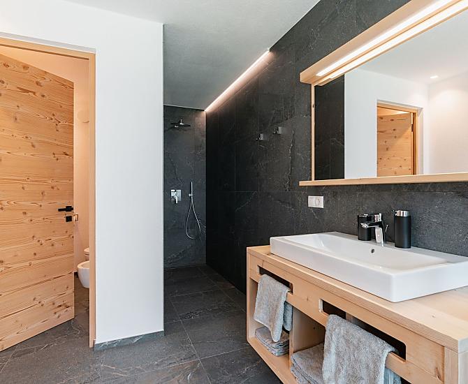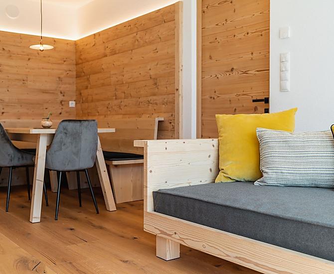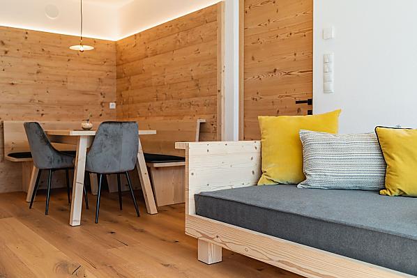 Our farm is located 930 m slightly above Mühlen in Taufers. We are surrounded by meadows and forests and yet the village centre can be reached in just a few minutes by car or on foot. WE keep Tyrolean 'Steinschafe' sheep, which are here with us on the farm all year round. You'll also find our chickens, cats, rabbits, guinea pigs and our donkey Emil We cultivate around five hectares of meadow and one hectare of fields on which we grow maize. Our chalets are nestled in the middle of the meadow - so the landscape and the view of the village and the surrounding mountains can be enjoyed in a carefree manner.
