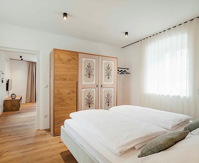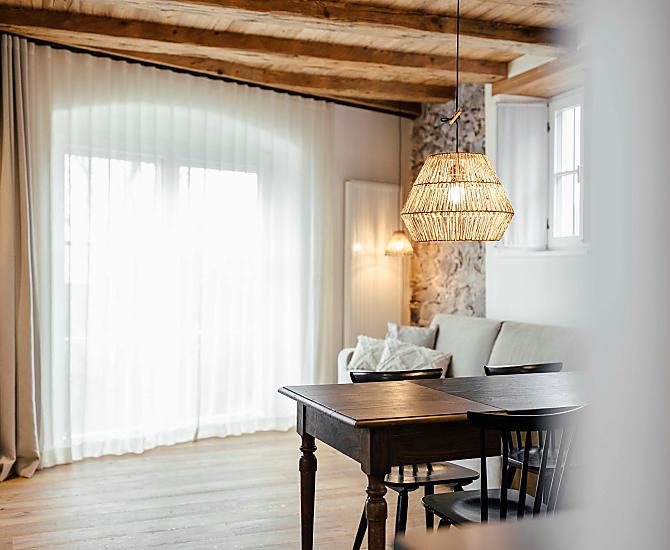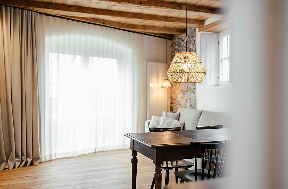 Our own-grown fruit and wine farm is the ideal place to escape from everyday life and enjoy nature in all its splendour. The lovingly renovated house combines tradition and modernity, and our holiday flats also inspire with unique details and lots of charm. The spacious courtyard offers enough room to spend the day relaxing and enjoying the marvellous view of the South Tyrolean landscape. Each holiday flat has a private terrace with an outdoor dining area.