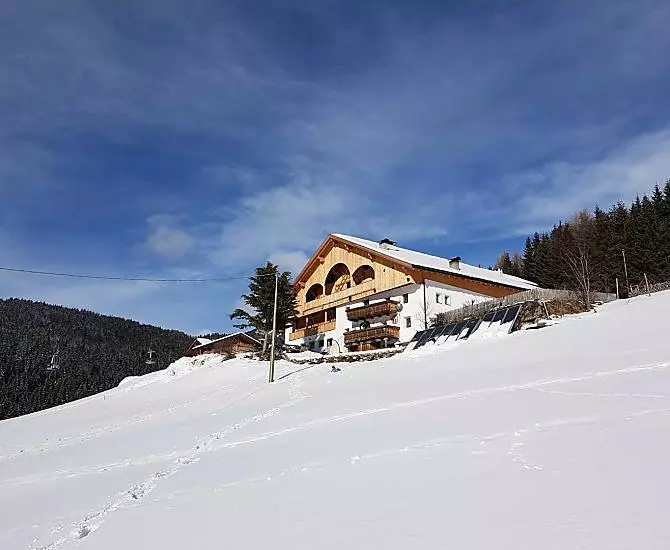 Coming via the Brenner motorway, take the Brixen/Pustertal exit. Follow the road for about 3 km in the direction of Bruneck/Pustertal. Before the first tunnel, turn right in the direction of Mühlbach. In Mühlbach turn left towards Meransen/Vals. From there, a panoramic road leads to Meransen after about 8 km. Drive in the direction of the Gitschberg valley station, continue over the small bridge and then turn right and drive until Hotel Gitschberg. Turn left above Hotel Gitschberg and after the right turn you will find Kaufmannhof (the first farm on the right).