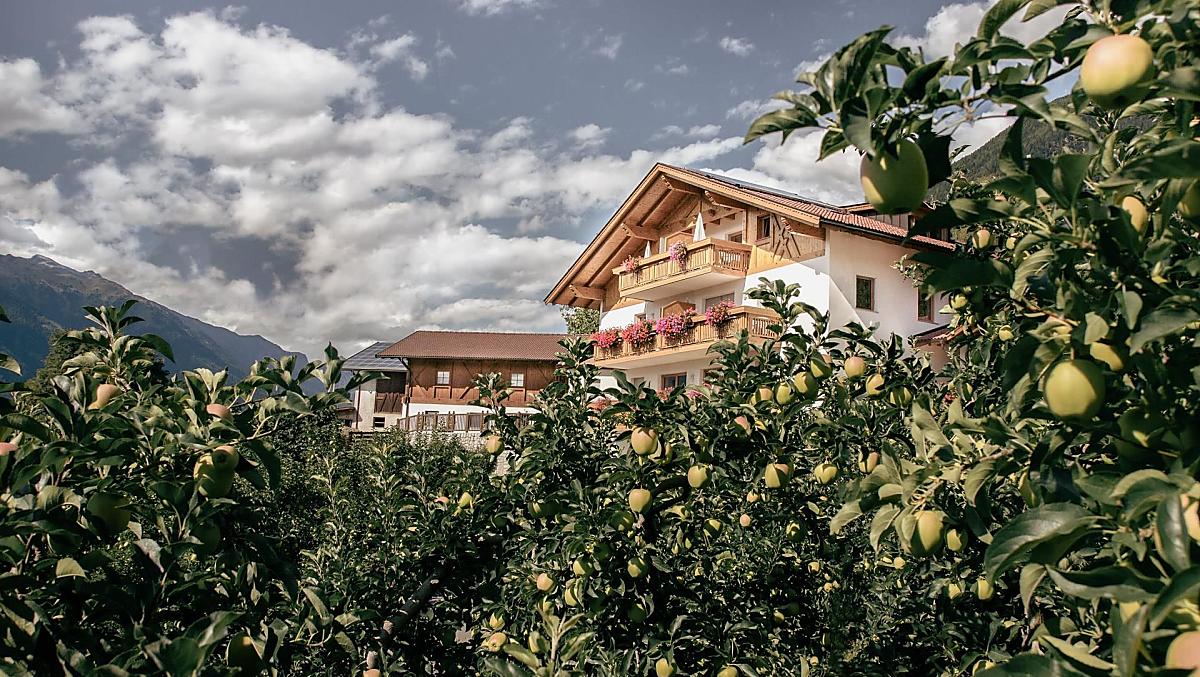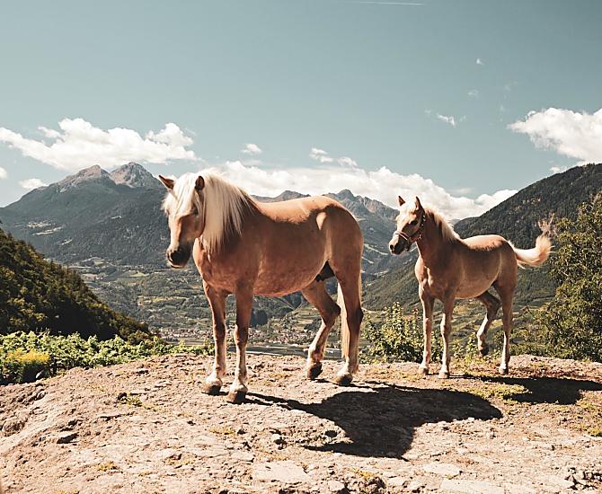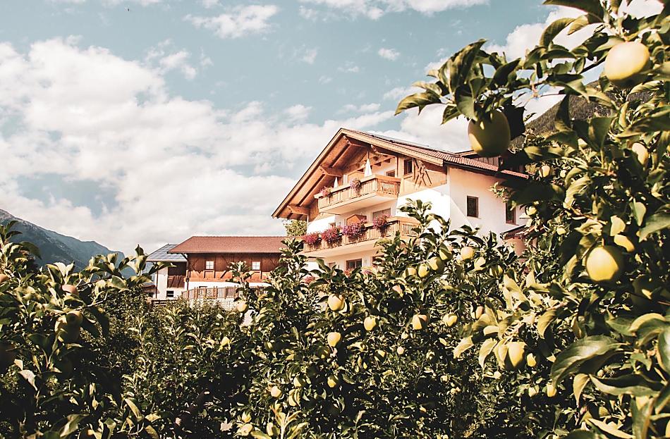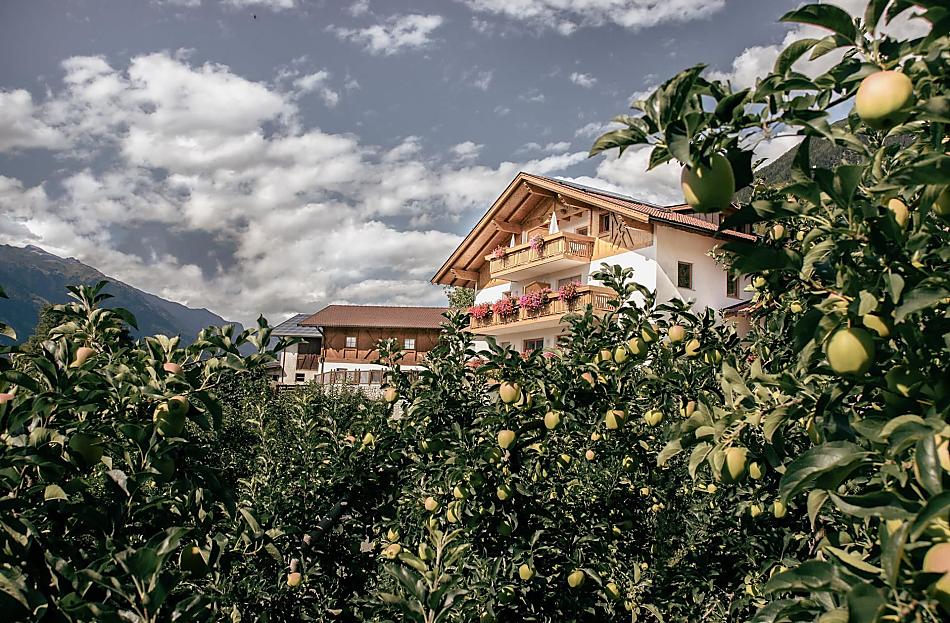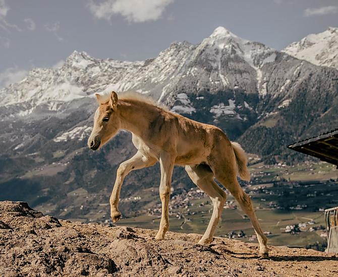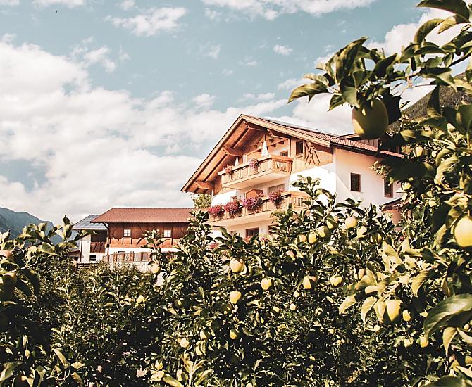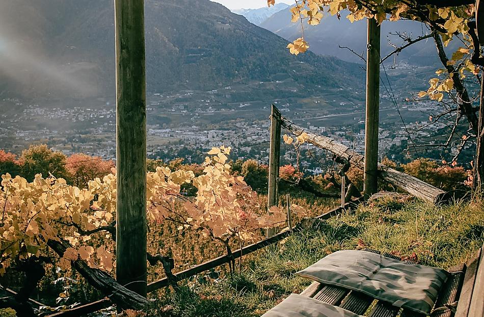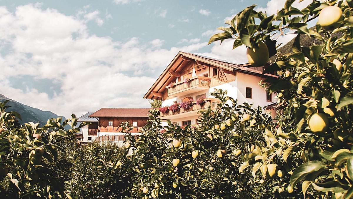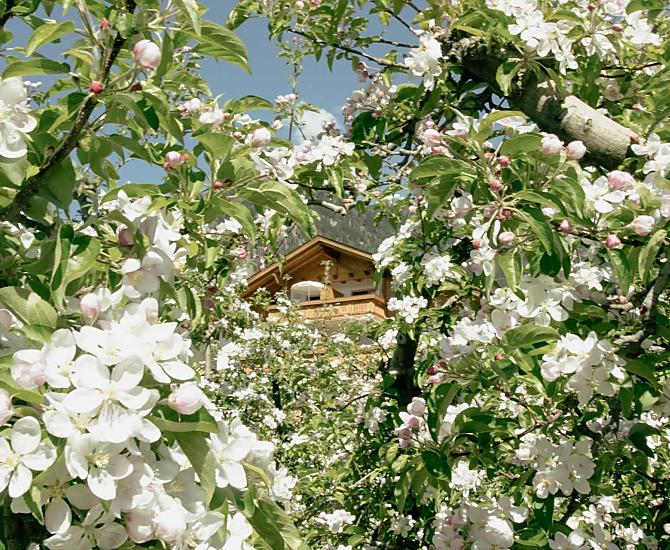 Our newly built farm is located in beautiful nature, on the sunny slopes of Meran, nestled in our own apple and hay flower meadows, just a few minutes' drive above the spa town of Meran.