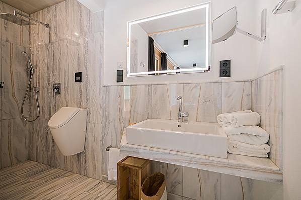 After an active day you can relax in the mini spa, a South Tyrolean experience. If you also want to enjoy the view from the house, you can retreat to the turret above the farm with a book. From here you can watch the children playing on the sand playground, on the climbing rock, between the pond and the stone circle. The whole house is available to rent, if you would like to use all the rooms and look after yourselves. The gastro-kitchen is at your disposal. If you only want to rent a room, you can get breakfast from us. We offer single rooms with breakfast including use of the kitchen in the evening 30 days before day of arrival. You can meet the other guests in the common room or at Jakobs-Brunnen fountain.
