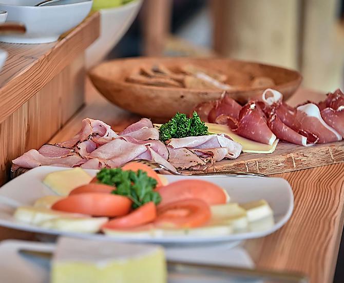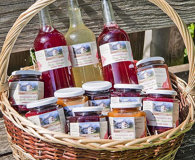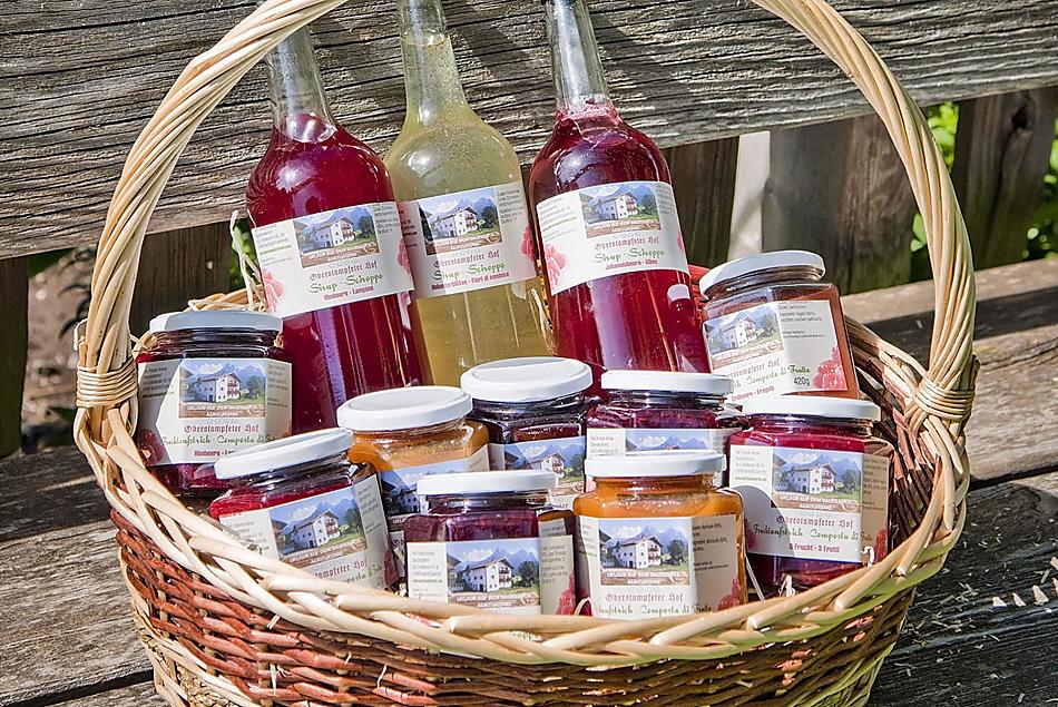 - Farm's own products at breakfast: milk, yoghurt, cheese, other milk products, speck, sausages, eggs, honey, fruit jams, cordial, herb teas, seasoning, bread, grain , baked goods, fresh vegetables in season, fresh fruit in season