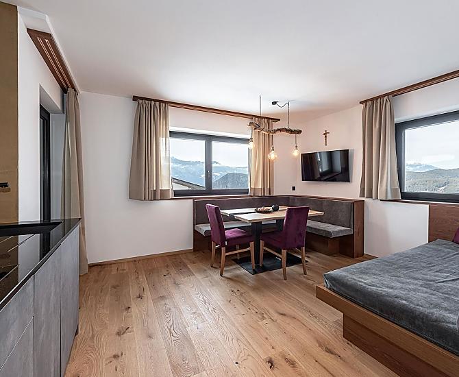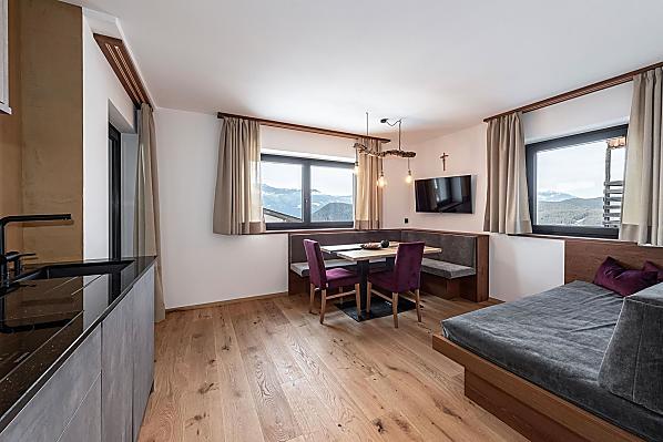 Where everyday life becomes an experience! Spend unforgettable holidays at the foot of the Seiser Alm in a beautiful and quiet location. A variety of special features await you: from breakfast in the chicken coop with a view of the origin of your breakfast egg to many different homemade products.