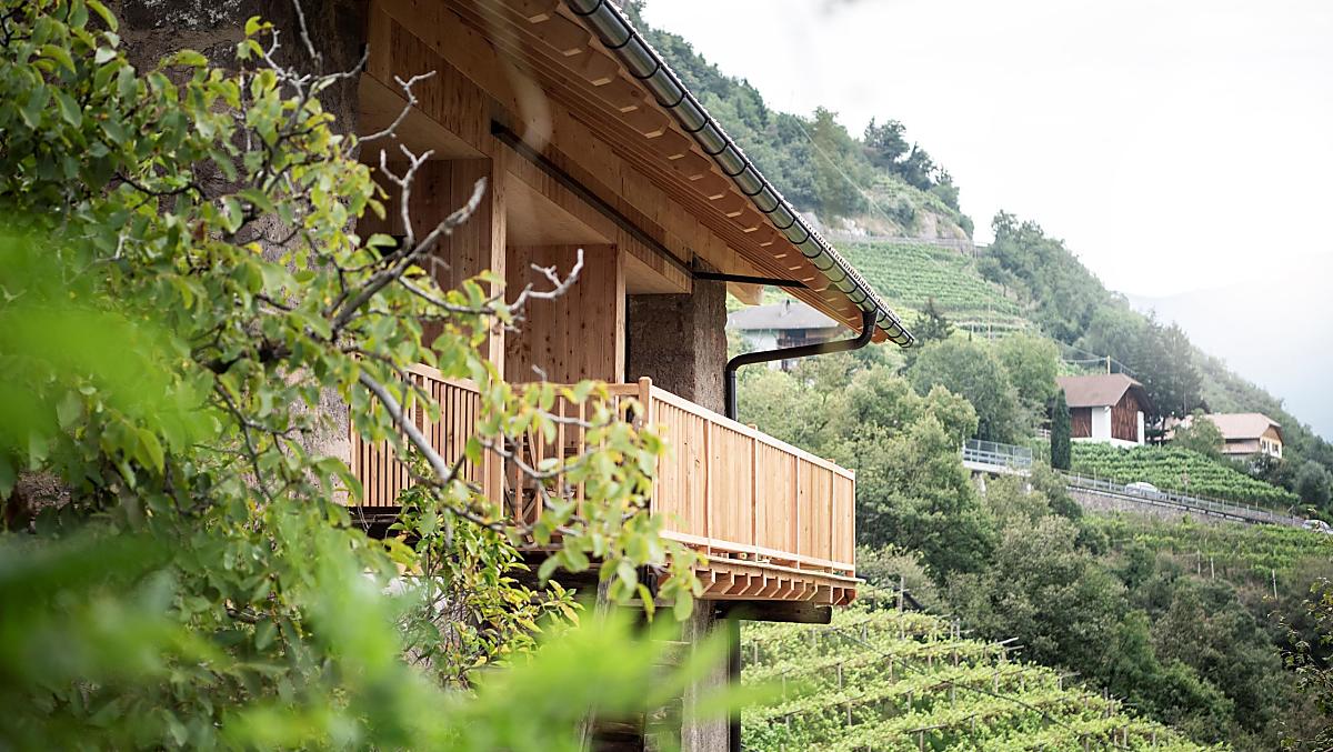 The three apartments are located in the historical barn of the Kristplonerhof winery. You stay in the middle of the vineyard with a breathtaking panorama over the city of Bolzano as far as the Dolomites. We would be happy to pamper you with our breakfast basket. In our farm shop you will find many homemade products such as jams, syrups, wine, herbal teas and herbal salt.