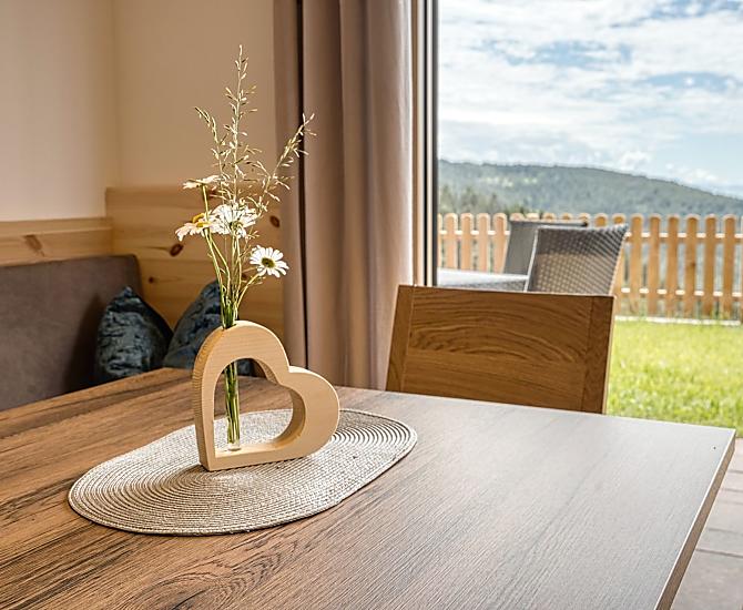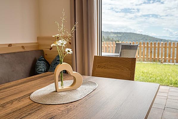 - Farm's own products at breakfast: milk, yoghurt, cheese, butter, speck, eggs, fruit jams, cordial, fruit juice, herb teas, seasoning, baked goods, fresh vegetables in season, fresh fruit in season