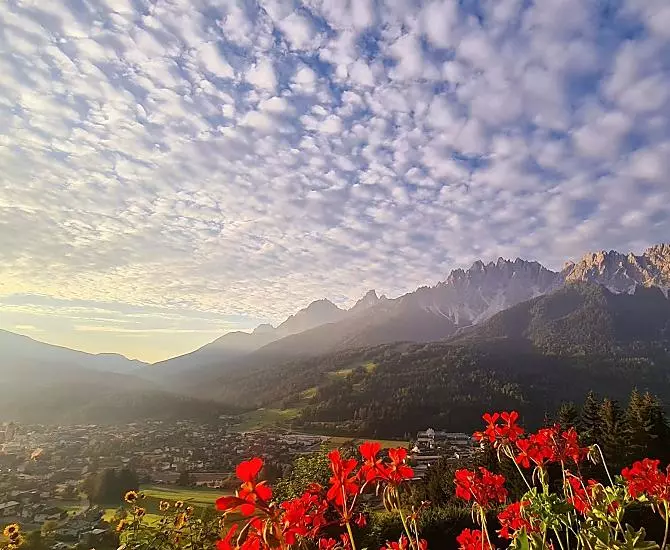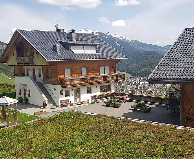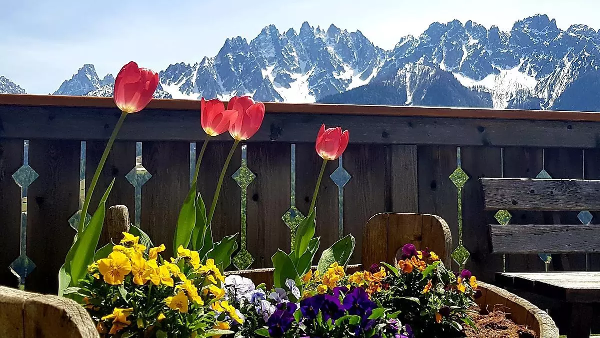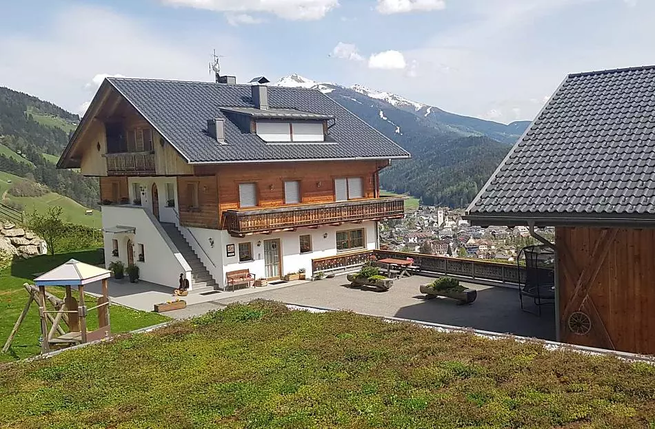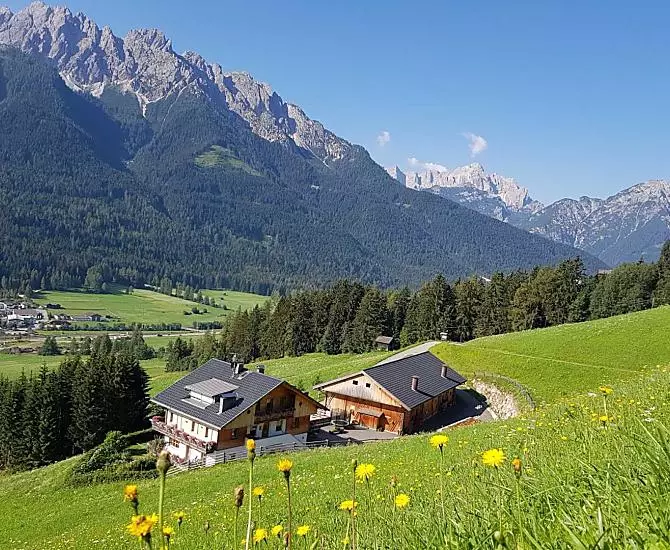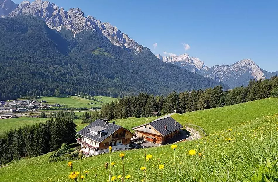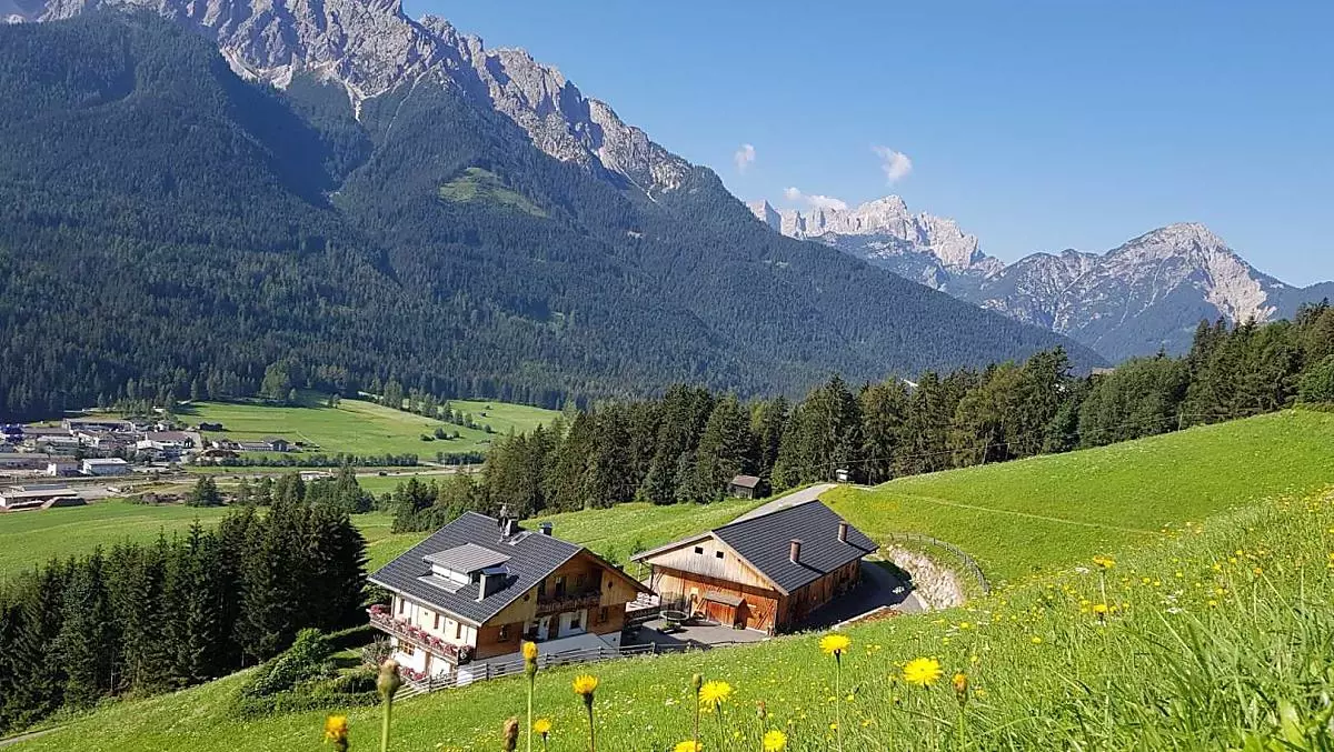The farm is situated in a unique location on the most beautiful sunny side of San Candid/Innichen at 1,340 metres above sea level and offers an unobstructed view of the imposing Dolomites and the historical village of San Candido/Innichen.