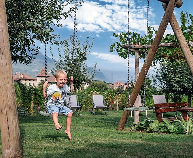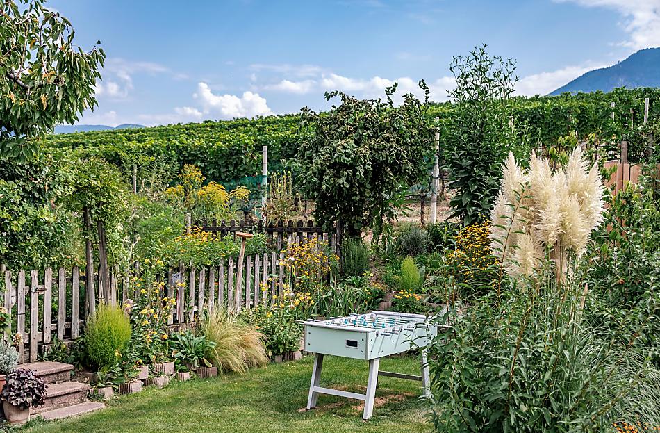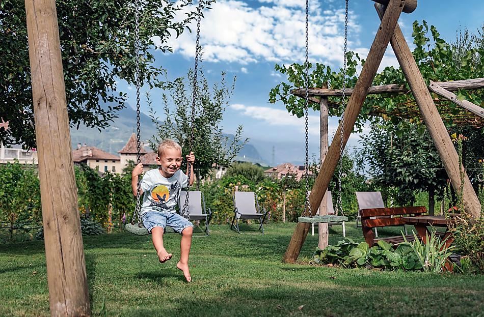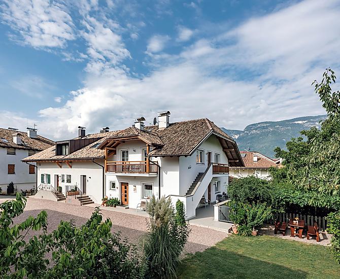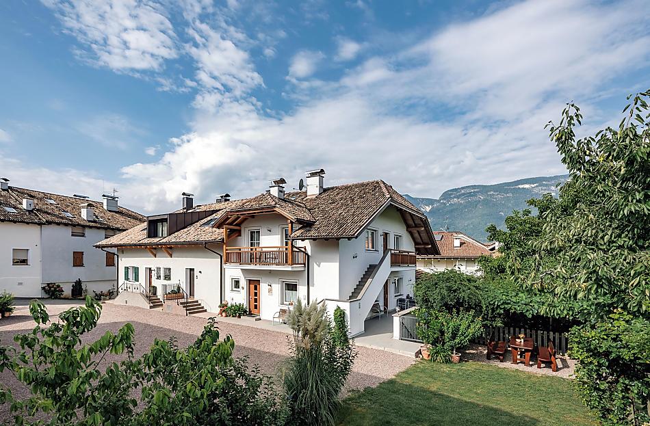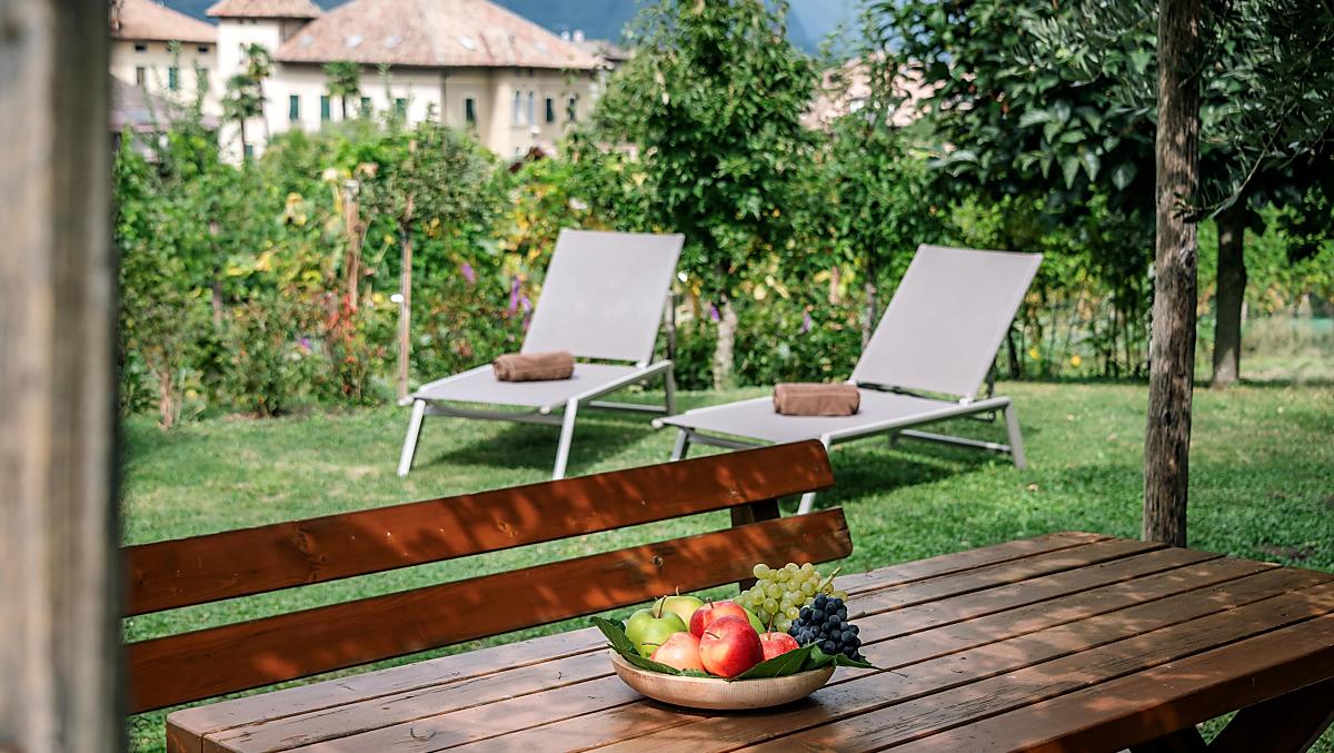 The farm is now being run by the fourth generation of our family and is located in the midst of the vineyards and apple trees we cultivate on the quiet outskirts of Girlan. Our well-kept sunbathing lawn with a gazebo with a view of the orchards and surrounding mountains invites you to linger and relax.