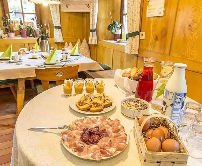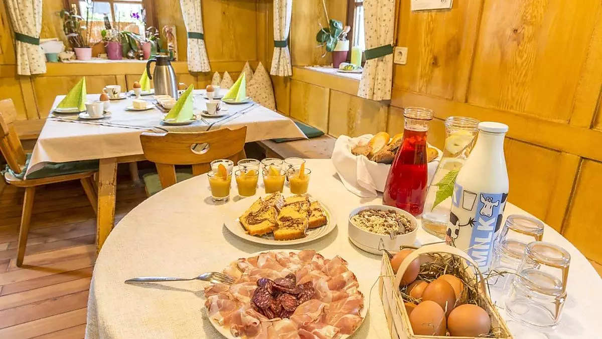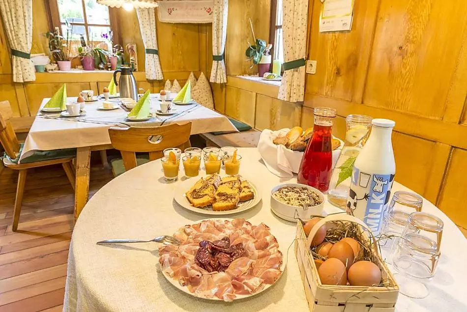 - Farm's own products at breakfast: milk, speck, sausages, eggs, fruit jams, cordial, bread, baked goods, fresh fruit in season