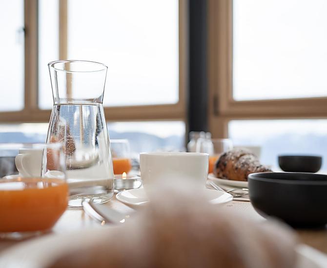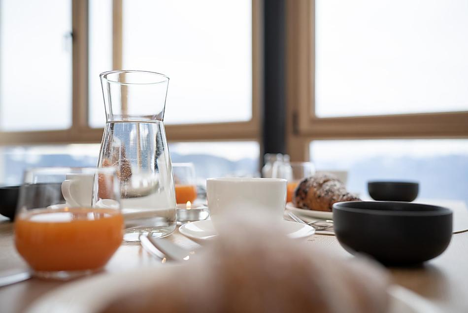 We are also happy to spoil you with a balanced breakfast in our panoramic breakfast room or as a lovingly selected breakfast basket in one of our new and well equipped holiday flats.