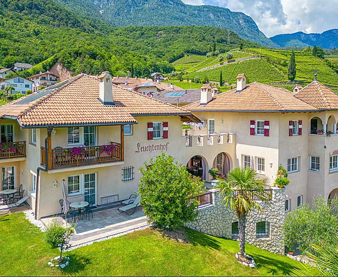 Spend the most beautiful weeks of the year at the Leuchtenhof in the middle of the sunny vineyards with a view of Lake Kaltern.