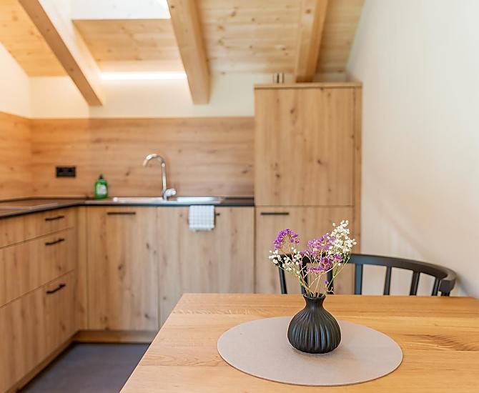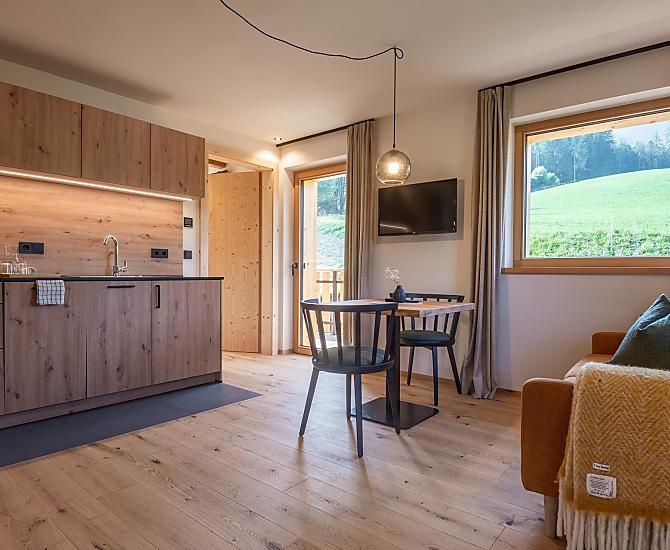 In harmony with nature...we have furnished our 5 new flats according to this motto. Organic walls and pinewood from the farm's own forest ensure a healthy, healing indoor climate.