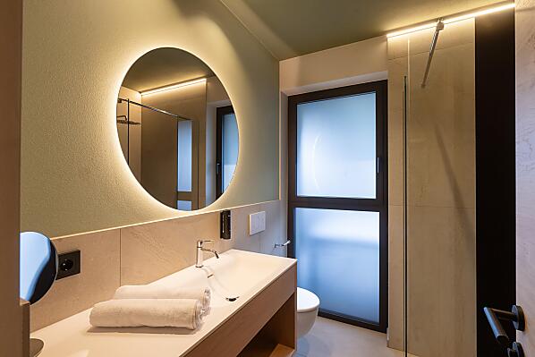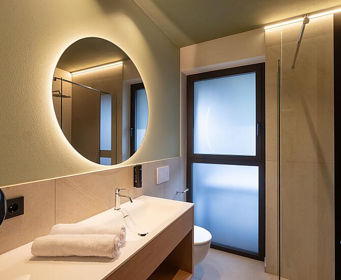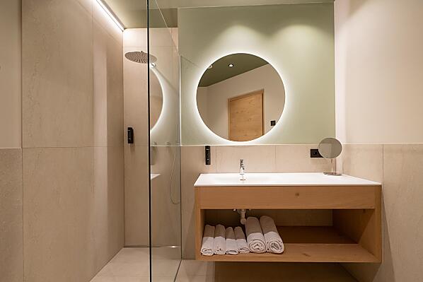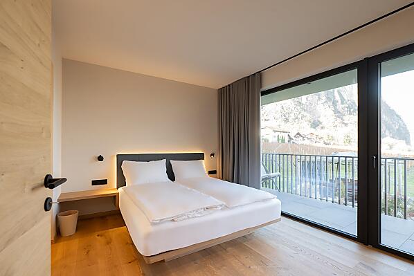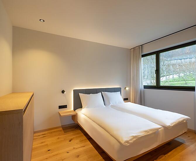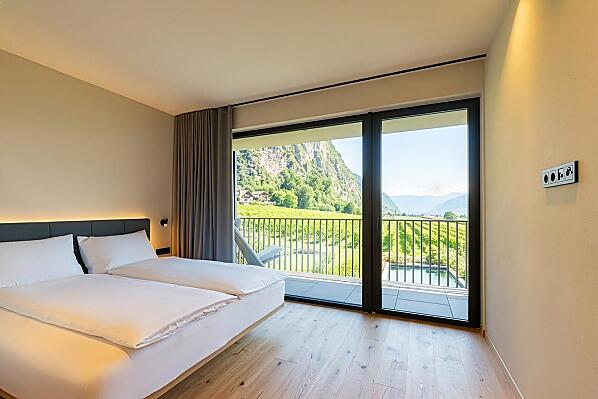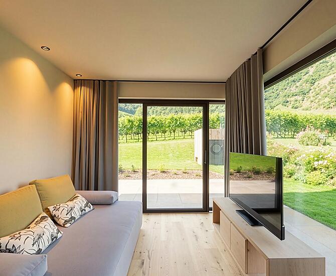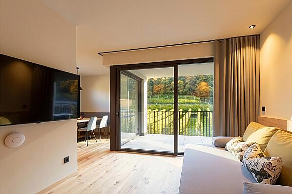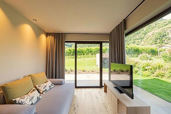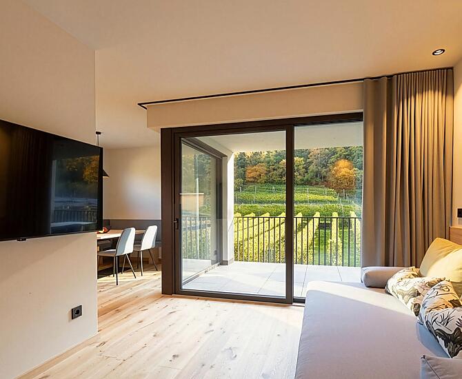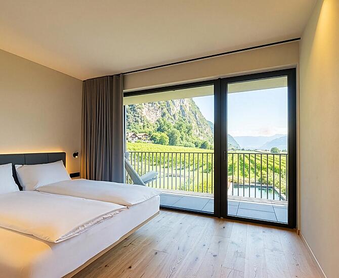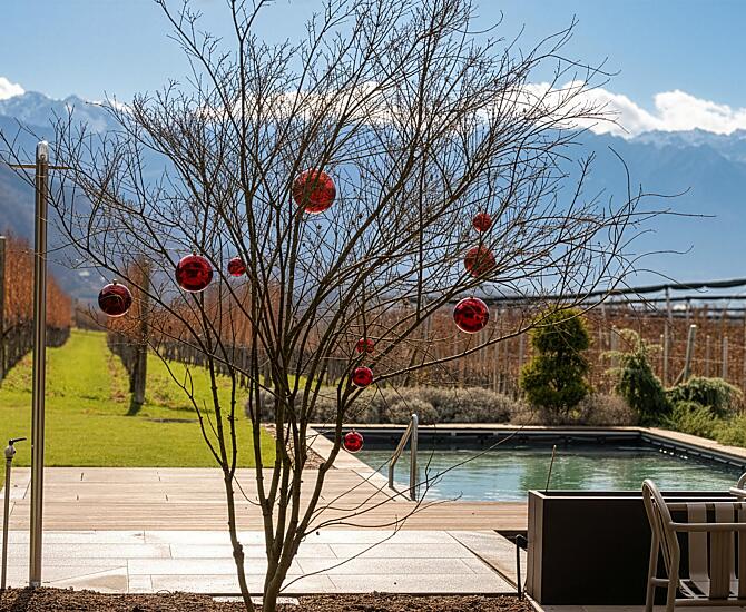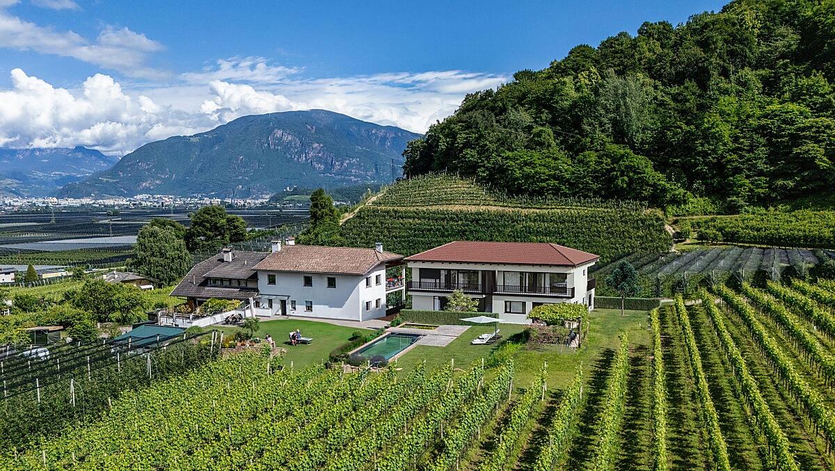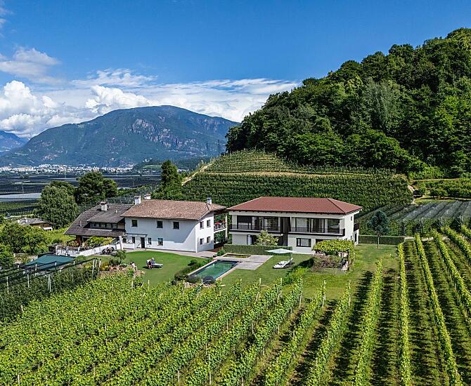 Our farm is located in the charming village of Unterrain in Eppan, nestling amidst vineyards, apple orchards and the proud castles of the surrounding area. Just a few minutes from Bolzano-Bozen, you are surrounded by nature yet close to the action. A place that offers peace and quiet and space – and where we welcome you with open arms, a smile and many little moments of happiness. Our organic pool blends in harmoniously and is operated in a resource-saving manner without the use of chemicals. Everything is designed to make you feel good.