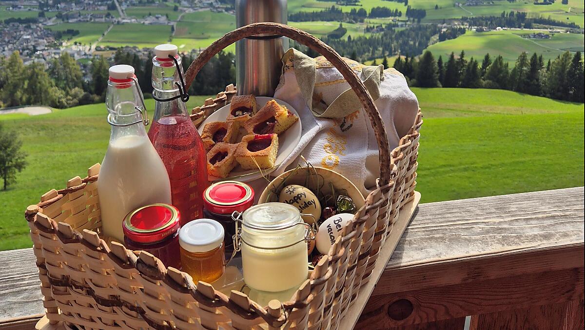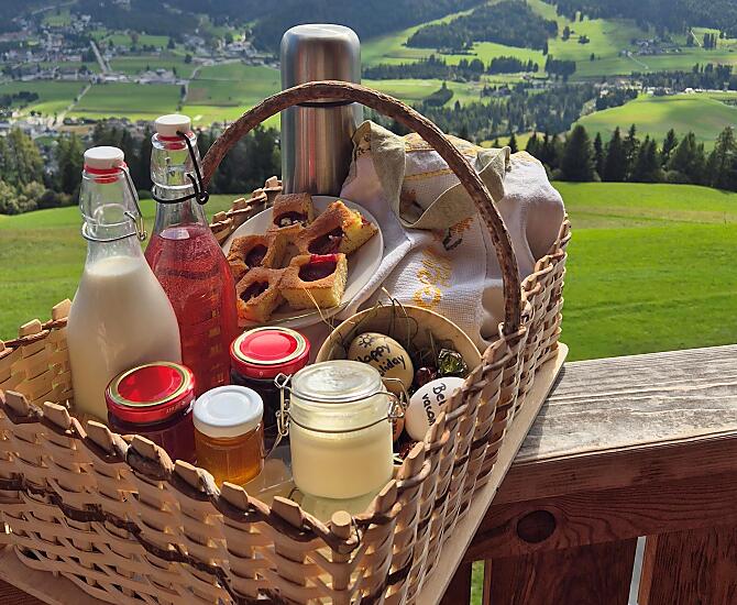 We, the Plitzner family, welcome you to our sun-kissed mountain farm at 1600 m above sea level. The farm is located in the midst of a beautiful natural setting and an incomparable mountain panorama. Every day we spoil you with a fantastic, breathtaking view of the Dolomites and the view of the village centre, which is often shrouded in mist.