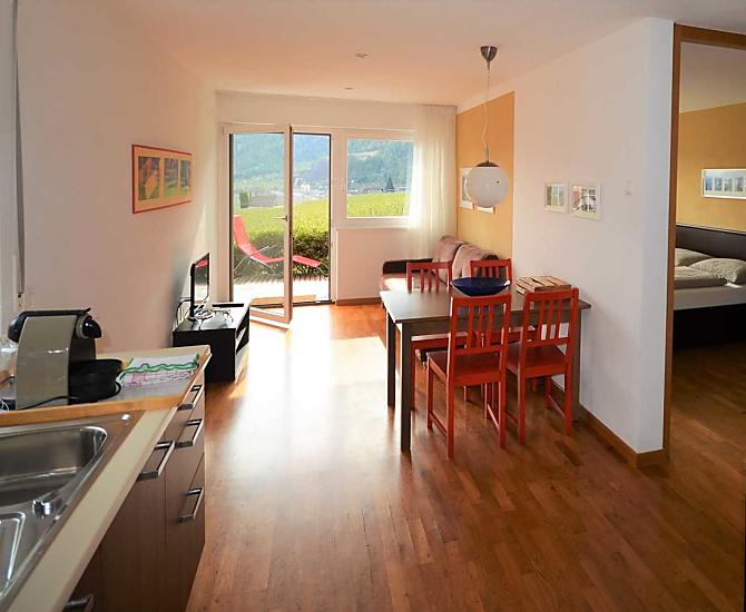 From the Reschen Pass: Follow the road for 54 km in the direction of Meran. When entering the village of Kastelbell, turn right immediately over the Etsch bridge, then follow the signs to "Marinushof" for 300 m to our farm.