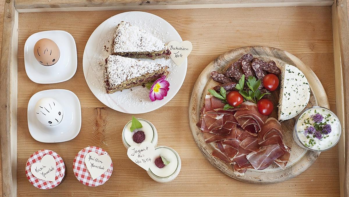 - Farm's own products at breakfast: milk, yoghurt, cheese, speck, eggs, honey, fruit jams, cordial, jellies, herb teas, baked goods, fresh vegetables in season, fresh fruit in season