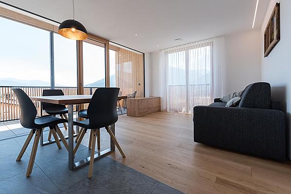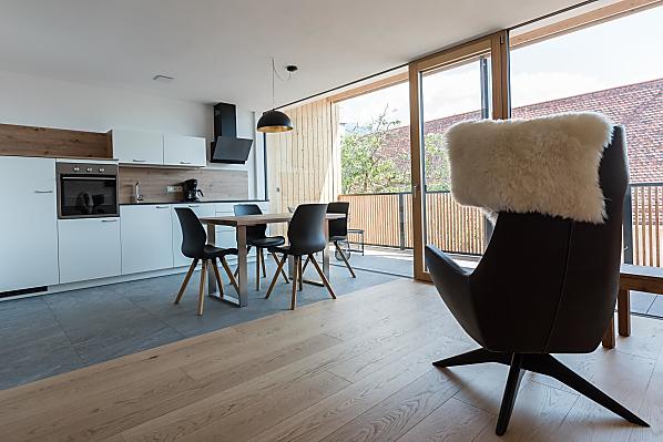 Would you like to spend a relaxing holiday in South Tyrol, where you can enjoy relaxation and nature right on site and at the same time have a great base for going on excursions? Then you've come to the right place. Your holiday home, the Mesnerhof, was first mentioned in records in 1349. While we used to farm livestock and grow vegetables, we have specialised in apple growing and viticulture for several years now. We are delighted that our dream of renting out holiday flats in South Tyrol has come true and that we can now welcome you to Raas near Brixen. The former stable has been transformed into five modern holiday flats. Since 2022, the farm has been unveiled in new splendour and yet still retains a touch of family tradition.