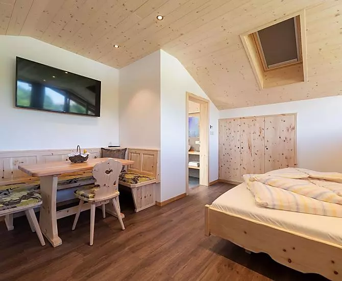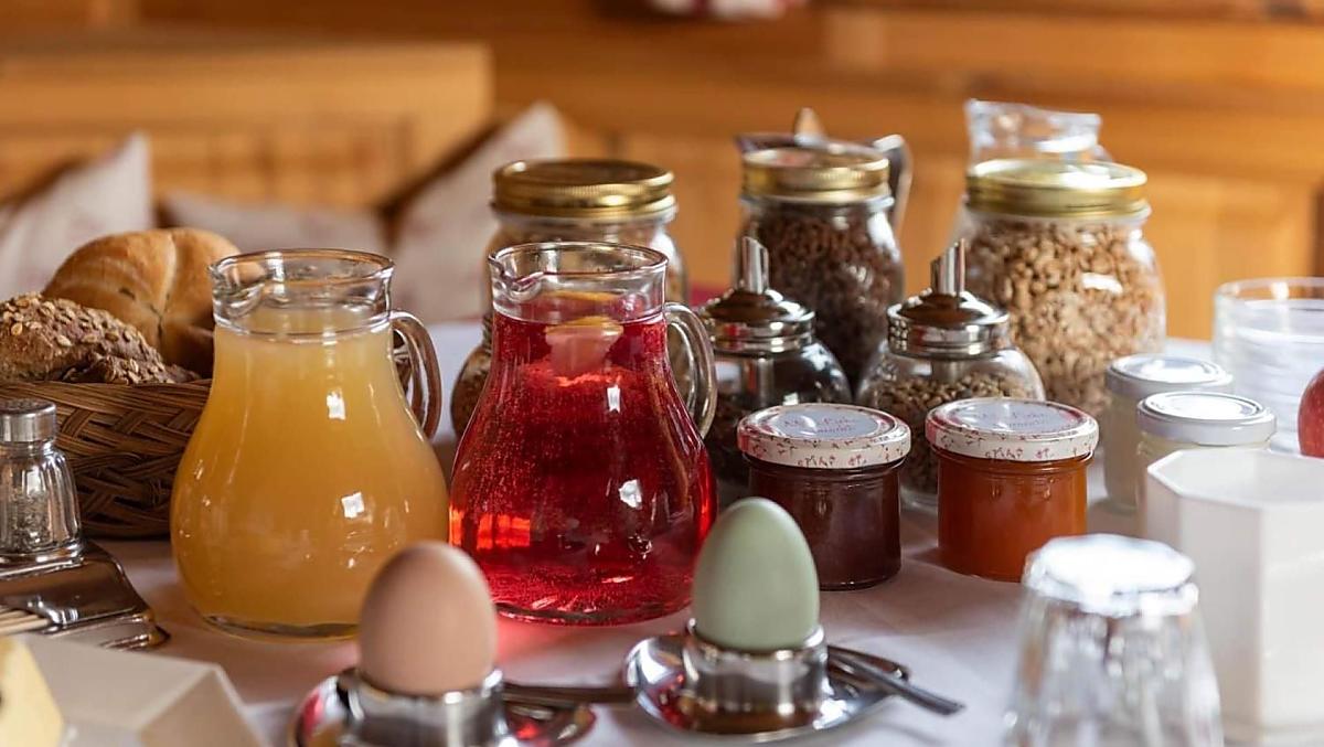 - Farm's own products at breakfast: yoghurt, speck, cured beef, sausages, eggs, fruit jams, cordial, fruit juice, dried fruit, pickles, herb teas, seasoning, bread, baked goods, fresh vegetables in season, fresh fruit in season