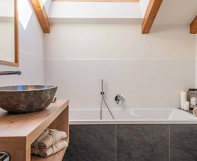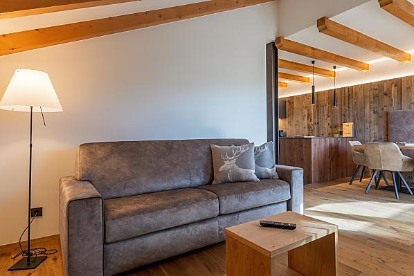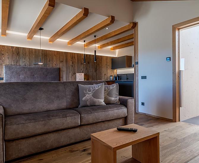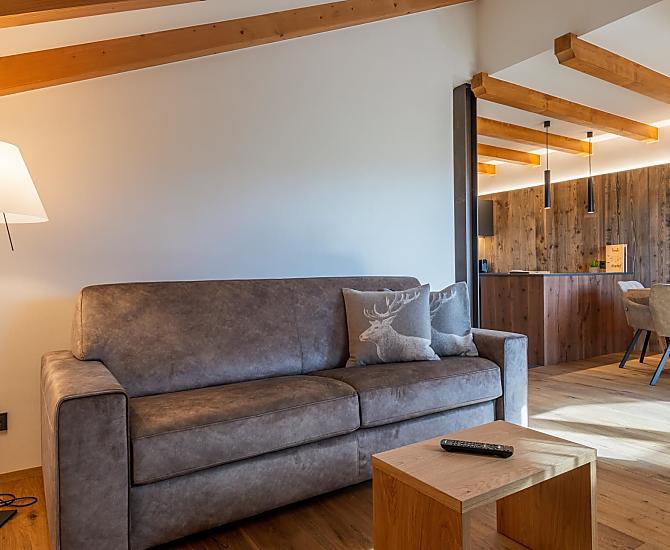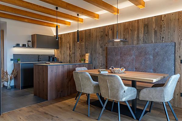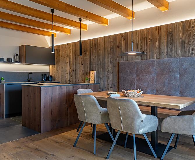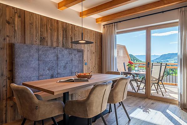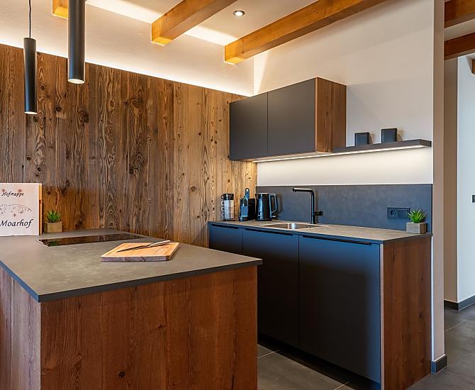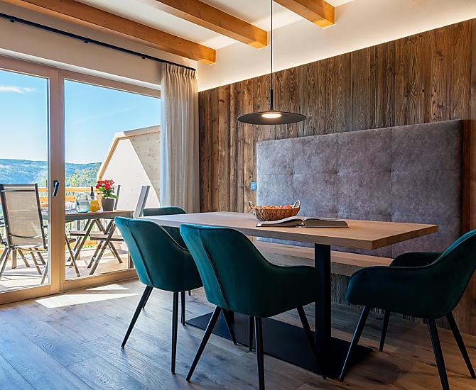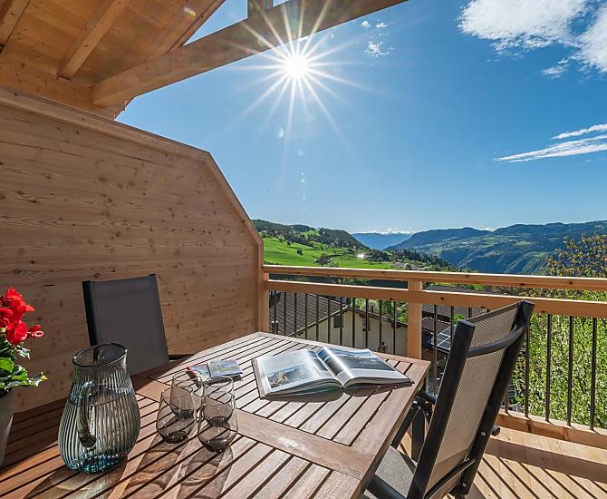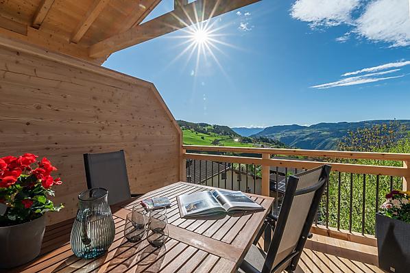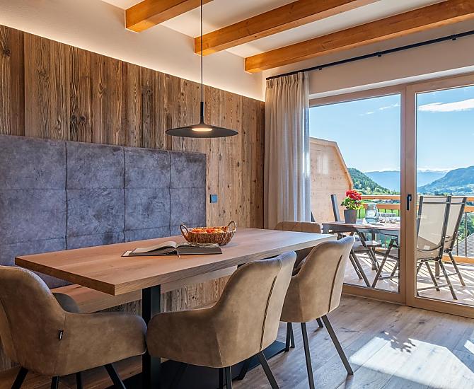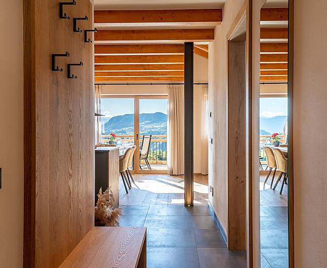 You'll find exactly what you're looking for at Moarhof farm in Ums near Völs am Schlern: farm life to experience South Tyrol in step with nature's rhythms. Surrounded by meadows and forest, we have created two new holiday flats here in a quiet, sunny spot in the Seiser Alm holiday region that will make your holiday one to remember. Besides our guests and the host family, there are horses, cows, chickens and our playful dog, Mooly, living at Moarhof. Moments of farm life for the whole family, lots of fresh mountain air and an amazing all-round view of the Schlern massif and Schloss Prösels castle.