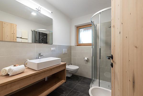 The Moarhof is located on a sunny southern slope in Hofern, Aschbach at an altitude of 1322 m. It offers a breathtaking view of the Puster valley and the Kronplatz. Many different animals are kept on our farm, including cows, bulls, pigs, ponies, chickens, goats, cats and dogs. The farmhouse is one of the newest climate houses and has been certified as a climate house A (the highest classification). We offer five apartments, a wellness area with sauna and relaxation room, an infrared cabin, a ski room, a lounge and a games room. Our Moarhof-Alm is not far from the farm and is a popular destination for hikers and families. The Almschank offers traditional and homemade dishes. In winter, a toboggan run leads down into the valley.