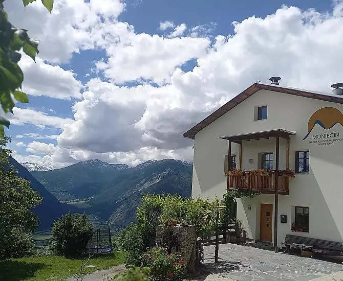 Coming from Reschen, drive along the main road to St.Valentin auf der Heide and continue in the direction of Mals. Continue through Mals to Tartsch. After the village of Tartsch, please turn left towards Matsch. Follow this road for approx. 3.7 km and then turn left again towards Muntatschinig. A narrow track will take you 1.3 km onto Montecinhof.