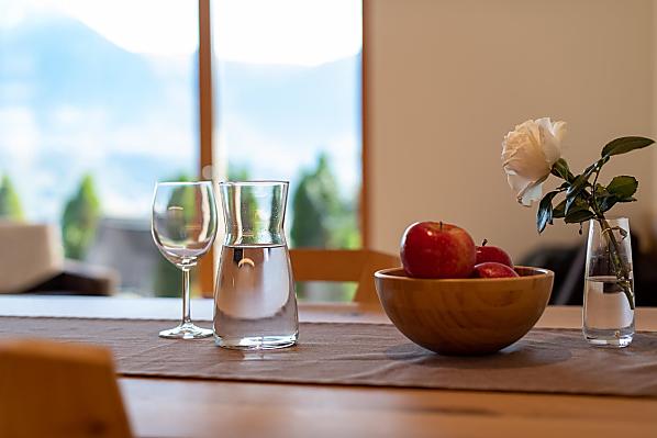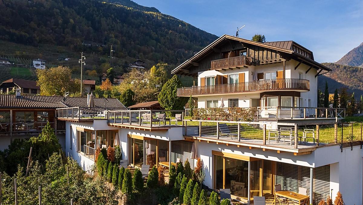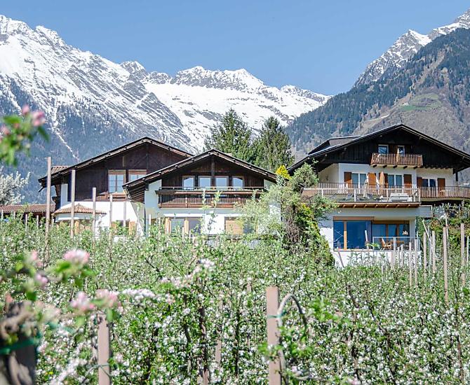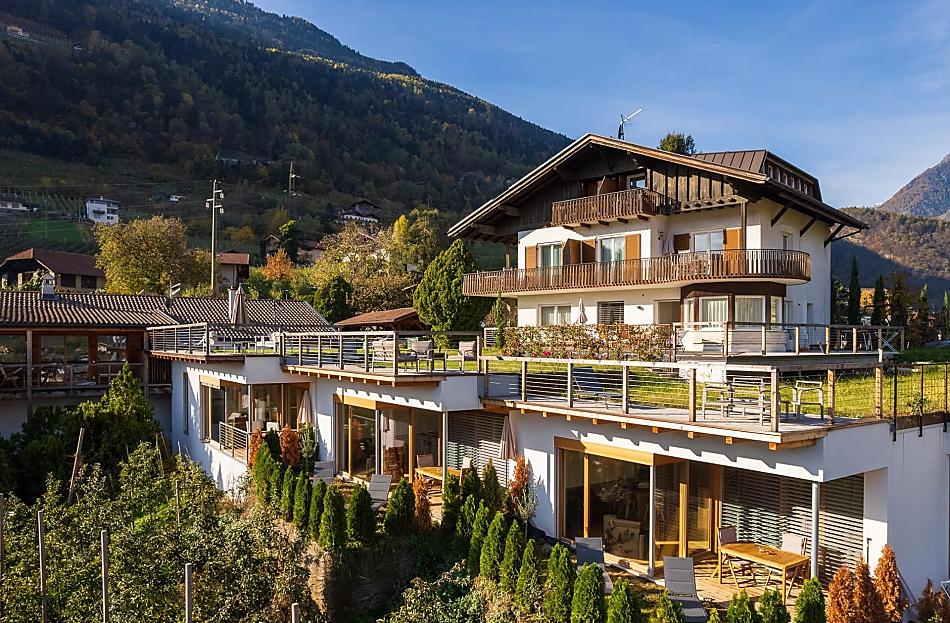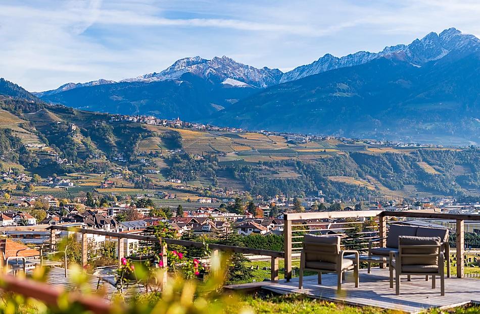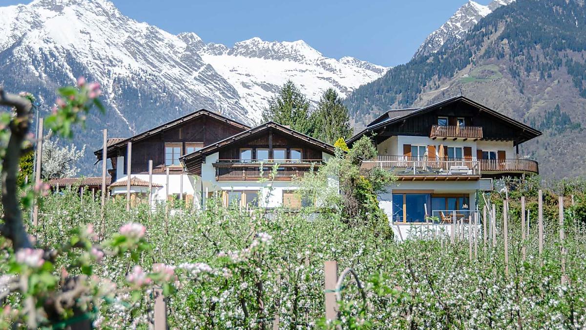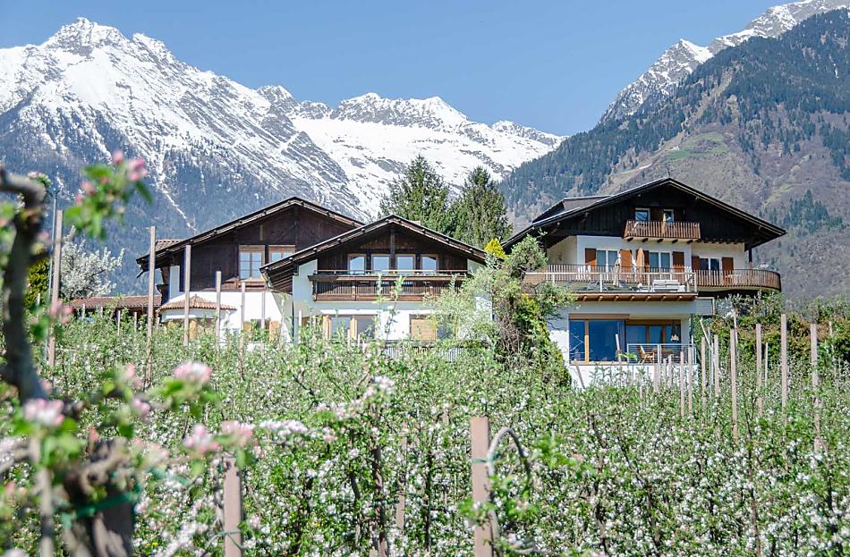 The Moosbichlerhof is situated on a sunny hillside in the middle of its own orchards with a unique panoramic view of the Burggrafenamt.