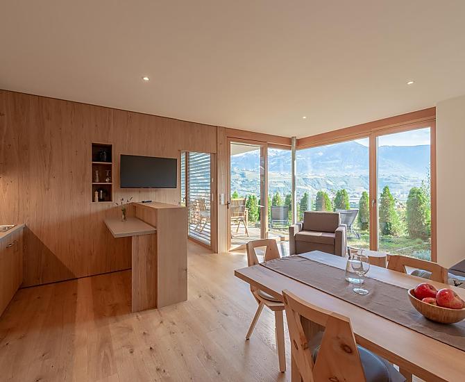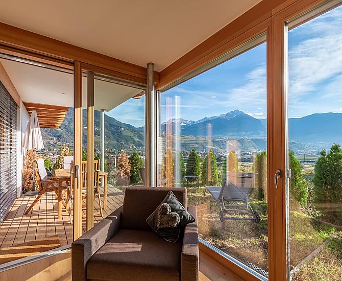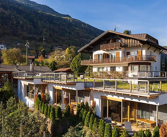 Experience relaxing and varied holidays on our farm in one of the sunniest places in Marling: in new and spacious feel-good apartments and in the large, solar-heated pool with a fantastic panoramic view.