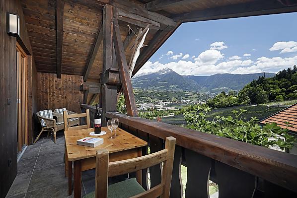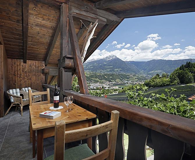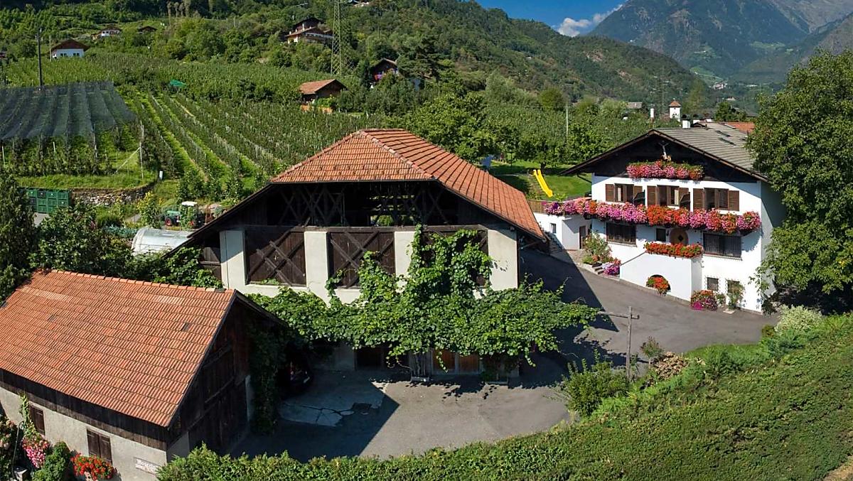We want our dear guests to feel comfortable on our fruit farm with swimming pool, in the midst of our own orchards in a quiet, sun-drenched location. Magnificent panoramic views of the Meran mountains, the best starting point for many hikes (Marlinger Waalweg and Höhenweg) and an ideal place to relax, unwind and enjoy.