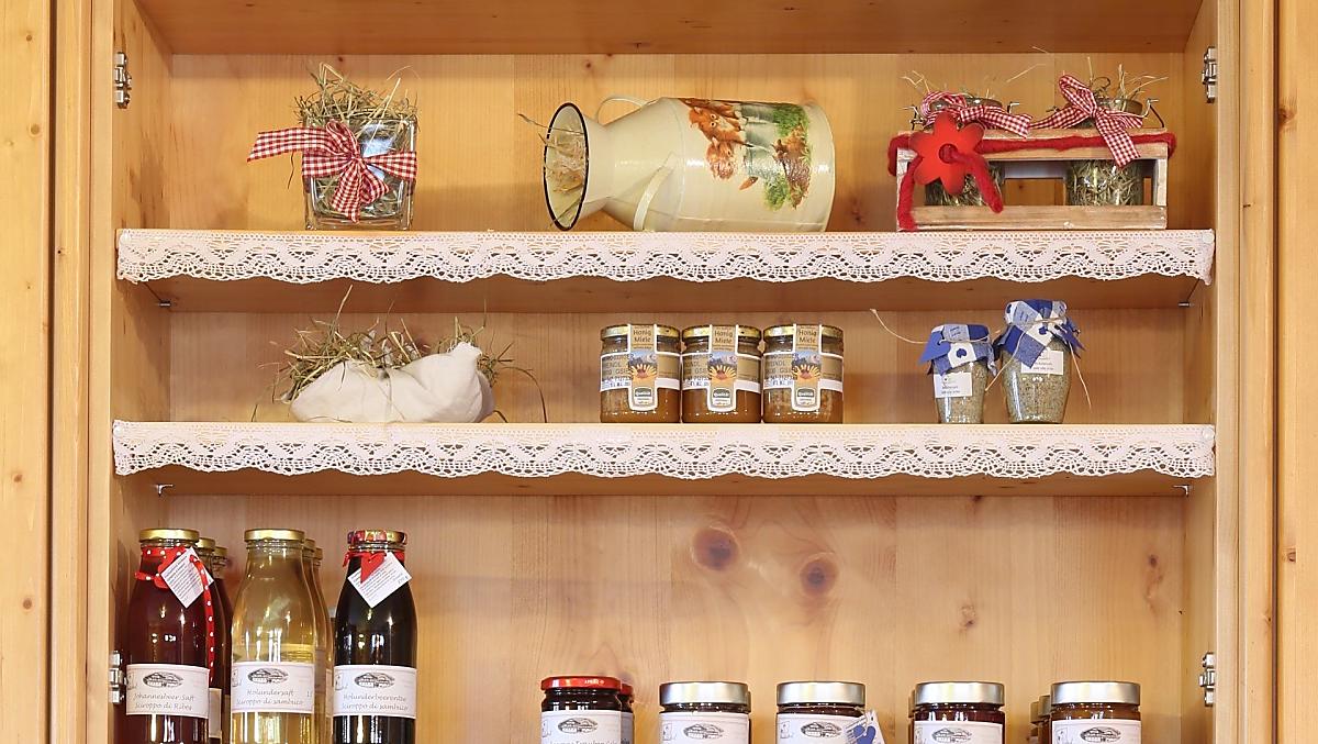 - Farm's own products at breakfast: milk, yoghurt, cheese, other milk products, speck, cured beef, sausages, eggs, honey, fruit jams, cordial, fruit juice, dried fruit, jellies, chutney, pickles, herb teas, seasoning, bread, grain , baked goods, fresh vegetables in season, fresh fruit in season