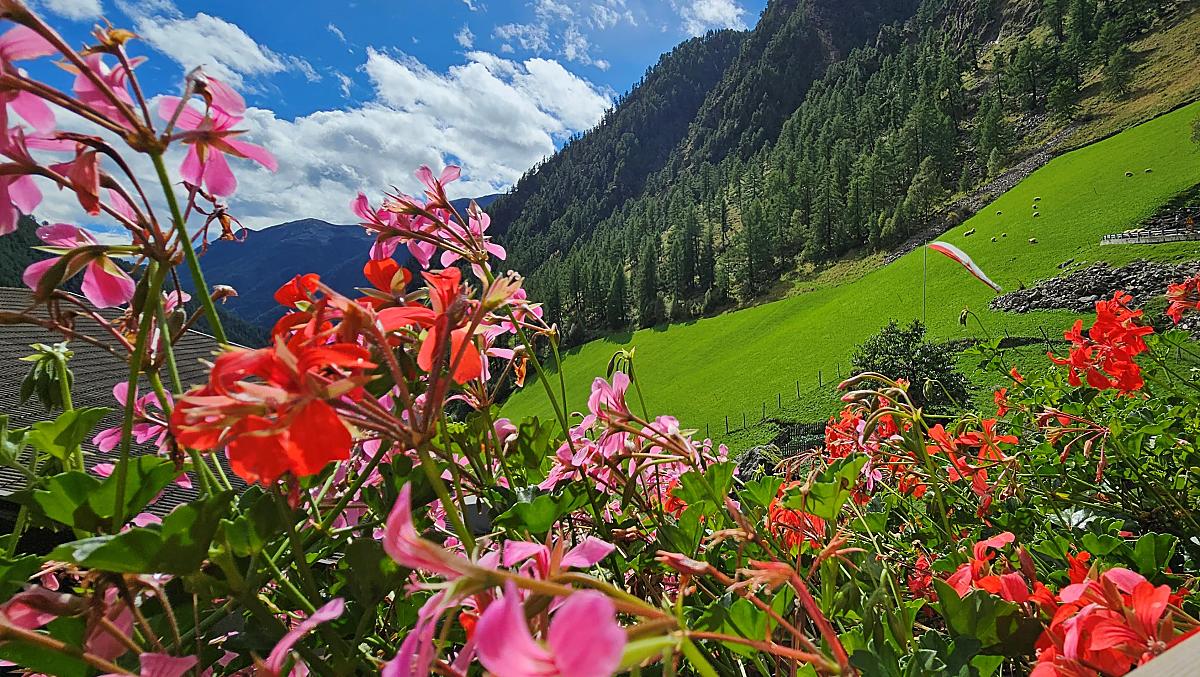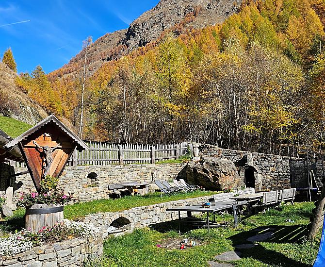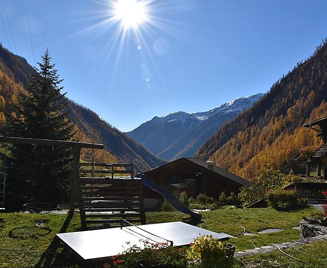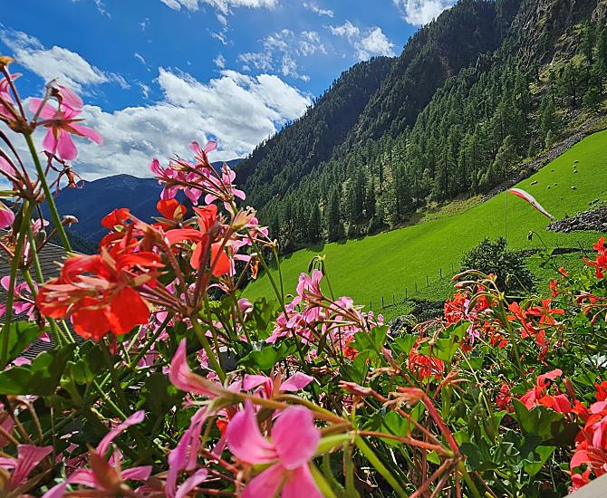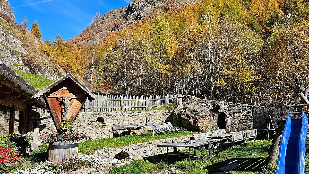 Fancy a farm? Then you've come to the right place! Our 500-year-old farm is nestled in a hollow between meadows, forest and rocks in the wild and romantic Pfossental. The farmhouse made of dark larch wood has been lovingly renovated - traditional, but still comfortable. While the children let off steam in the playground on the trampoline, slide and table tennis, the sunbathing area invites adults to linger. We run our mountain farm out of conviction, the species-appropriate husbandry of our animals and an environmentally friendly production of our high-quality farm products is important to us - the result is quality that you can taste.
