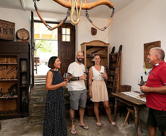 Our traditional fruit and wine farm is located in one of the most beautiful and peaceful areas of Meran, at the foot of Castle Tyrol. Even among vineyards and orchards, immersed in the tranquility of the countryside, it is located in the immediate vicinity of the centre of Meran. Our three newly built apartments, which can accommodate from 2 to 4 people, invite you to relax and rest, while the peace of nature will allow you to switch off all stresses and regenerate. Not only will we welcome you with genuine South Tyrolean hospitality, but we will also spoil you with many delicacies from our farm. While adults relax on our large sunbathing lawn or in the cosy seating area and enjoy nature, children can have fun in our playground, with slide, swing, sandbox and table football. New: Kneipp on the farm - 5 elements to relax and regenerate.