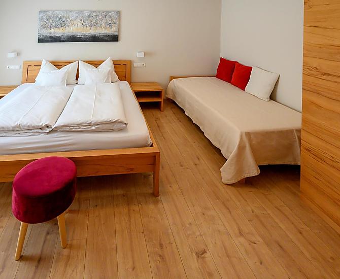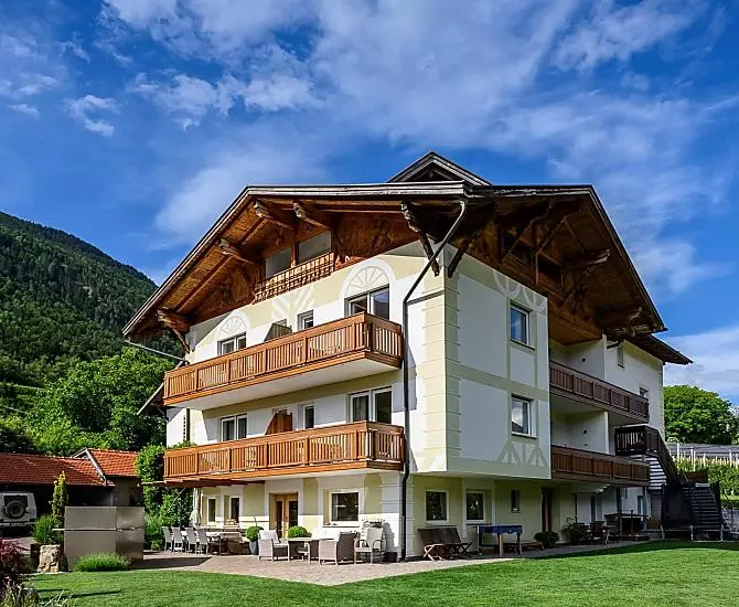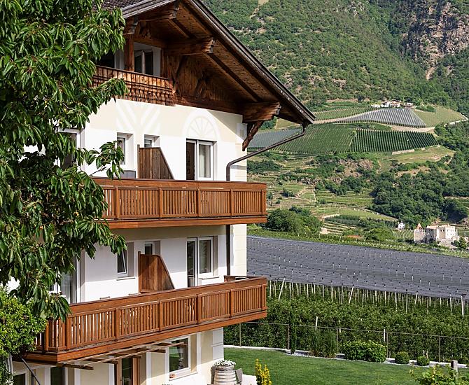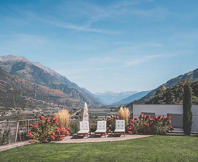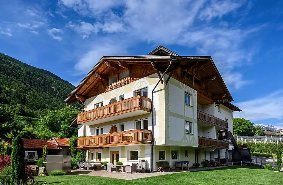 In the heart of Vinschgau lies the Niedermaierhof - quiet and in the middle of orchards, with a neighborhood that leaves nothing to be desired: the spa town of Meran approx. 20 km away, the Stilfser Joch National Park, Juval Castle by Reinhold Messner, the Mediterranean Sonnenberg with its unique climate and the irrigation channels, Trauttmansdorff Castle, one of the most beautiful gardens in Europe.