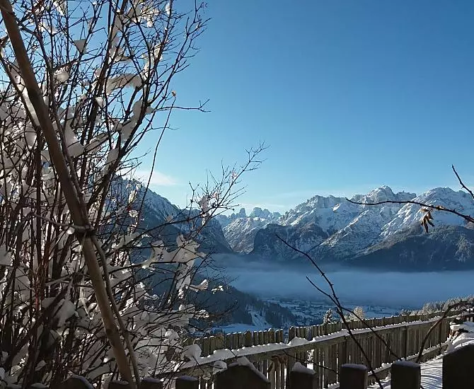 Close to nature, sunny and quiet, nestled in the beautiful mountain landscape of the Puster Valley, you will find our mountain farm with organic cattle at 1,560 meters above Toblach with the best view of the Dolomites, a UNESCO World Heritage Site.