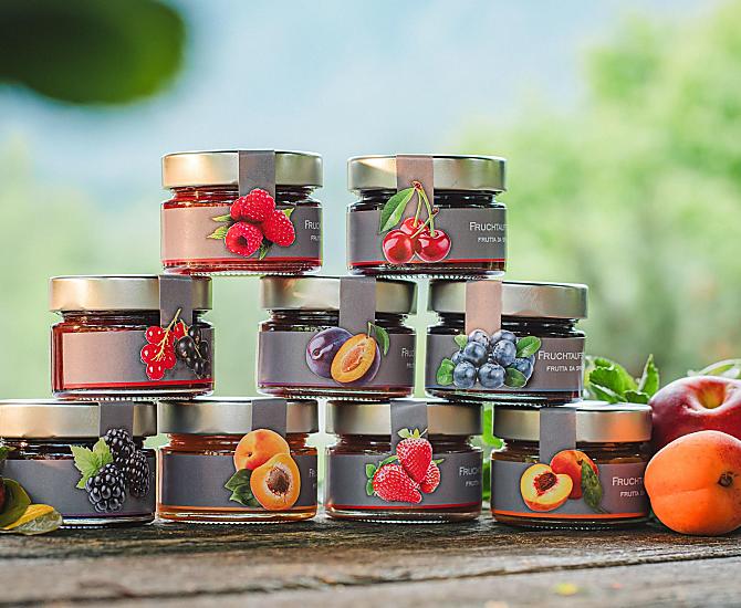 - fruit jams (apricot jam, bilberry jam, blackberry jam, blackcurrant jam, cherry jam, damson jam, mirabelle jam, peach jam, raspberry jam, redcurrant jam, strawberry jam)