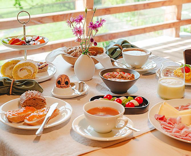 - Breakfast in the farmhouse, Outdoor breakfast (depending on the season), Breakfast buffet, Breakfast basket, Breakfast on wheels, Breakfast with organic produce, Organic breakfast basket