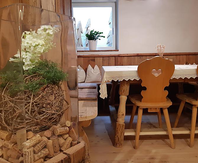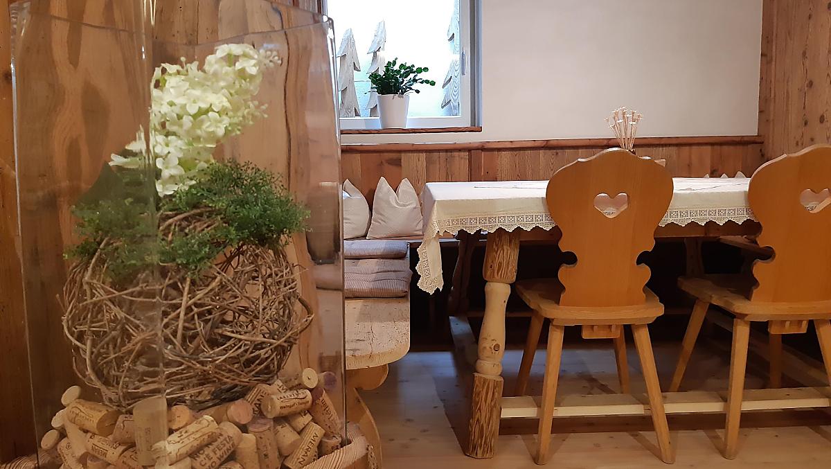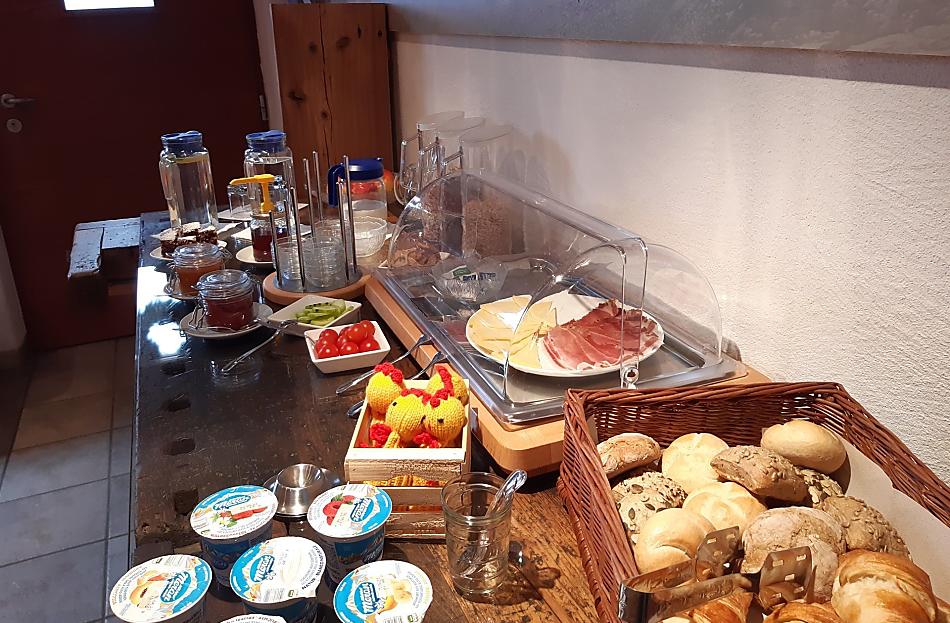 - Farm's own products at breakfast: milk, cheese, other milk products, speck, cured beef, sausages, eggs, honey, fruit jams, cordial, dried fruit, seasoning, bread, baked goods, fresh vegetables in season, fresh fruit in season