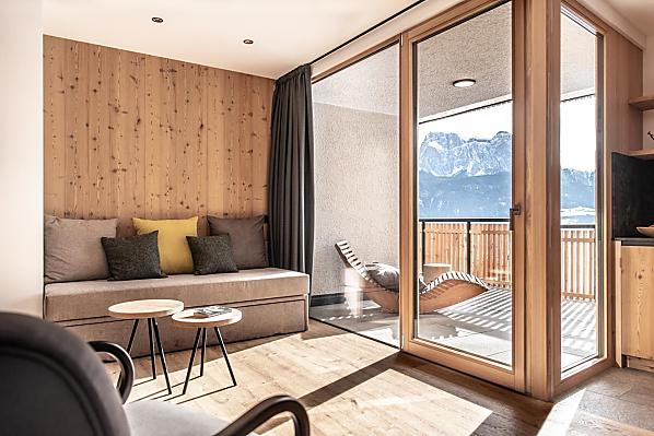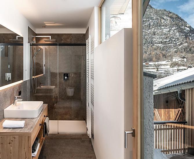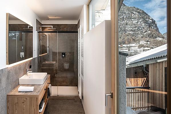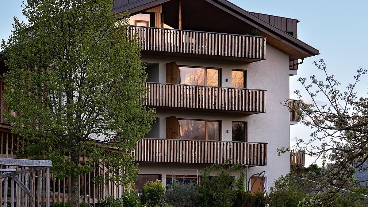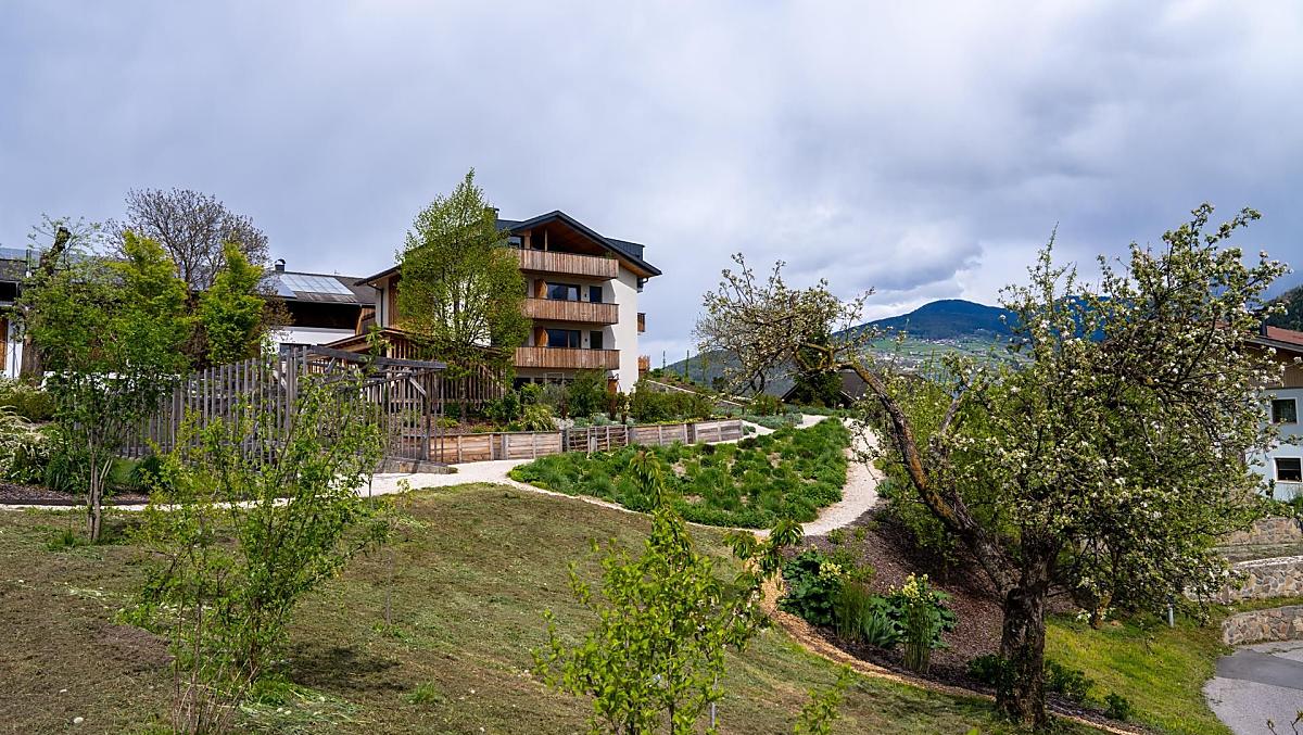 Tradition paired with modernity. Oberfallerhof farm is a panoramic, sun-kissed, quiet retreat to switch off and at the same time a perfect base for hiking, mountaineering, cycling and experiencing countryside and city, culture and cuisine. We offer four new apartments, each with balcony loggia, terrace and their own Finnish saunas. Generously built, cosy and comfortably furnished with lots of wood from our own forest, our farm is located amidst experiential gardens and also equipped with common rooms for reading, chatting, enjoying good food and celebrating: a cosy fireplace room with a well-stocked library, a vaulted cellar, a wine cellar, a large kitchen and technology for workshops. Located in the middle of South Tyrol at 750 m above sea level in the Eisacktal low mountain range, surrounded by apple orchards, vegetable fields and forests; run with passion and hospitality by Sabine and Erich Mur.