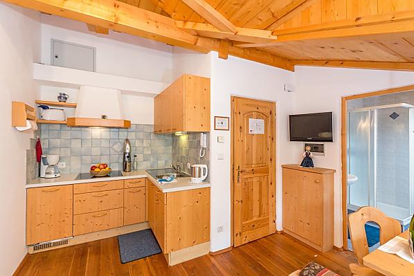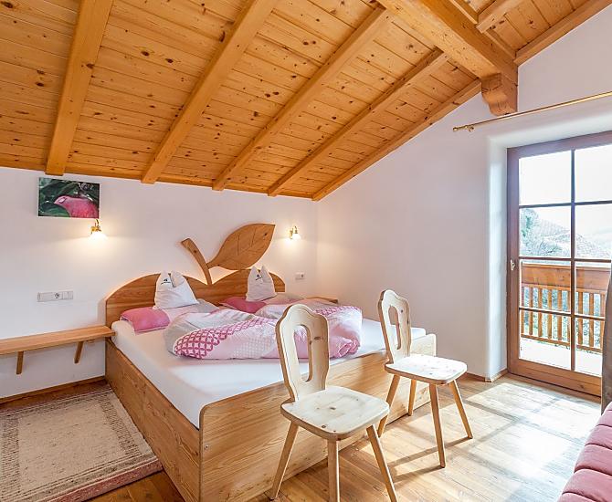 We offer our holiday guests two apartments of approx. 35 m² living space with sunny balconies and views of the South Tyrolean Dolomites as well as a single and a double room with private bathroom. A small playground with a slide, sandbox and much more offers entertainment for our little guests.