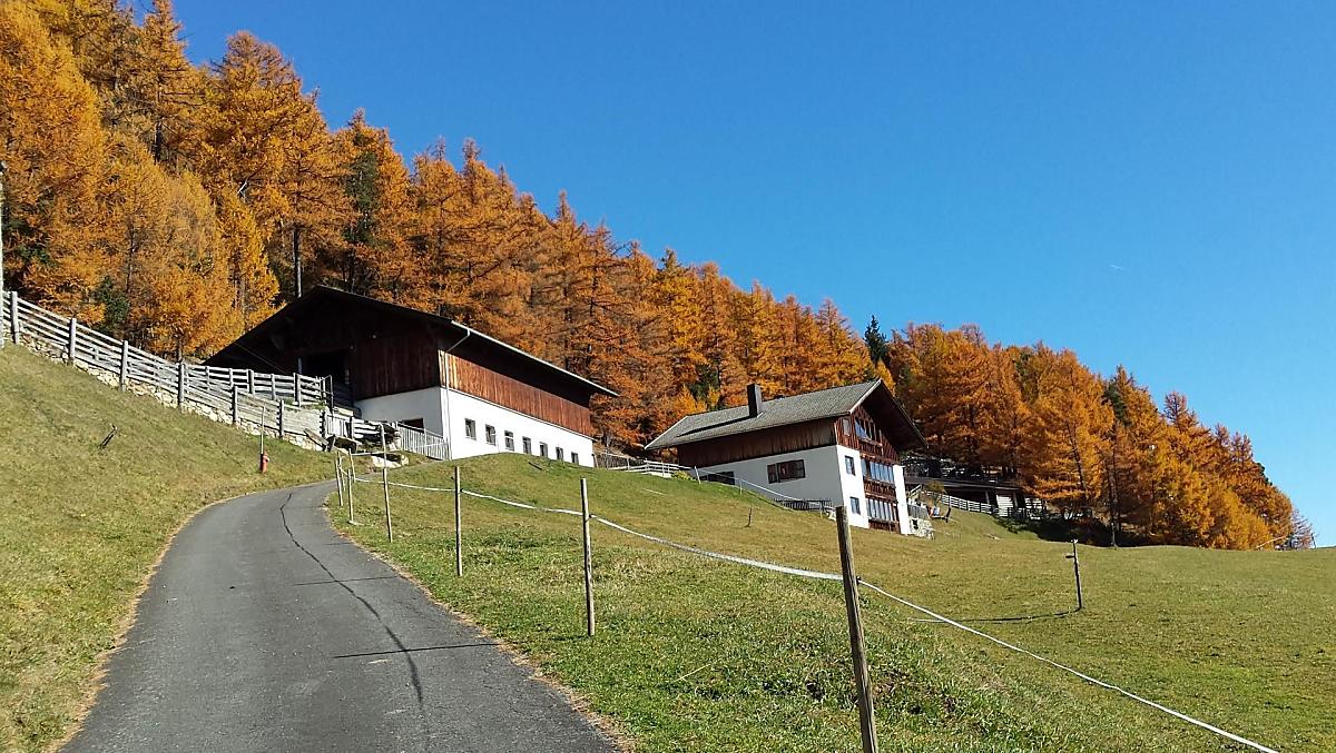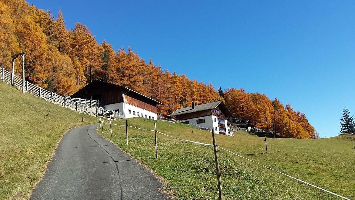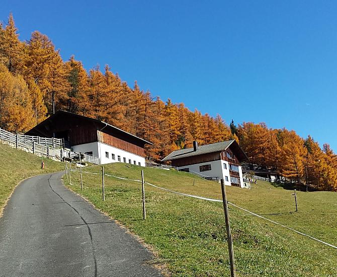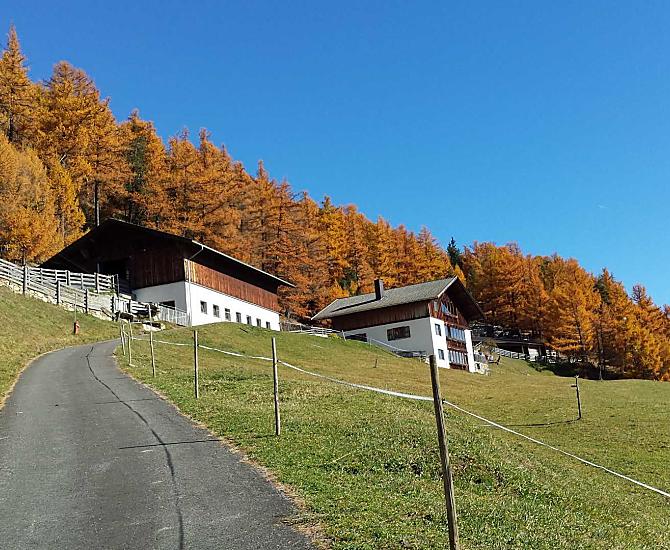 Now follow the road and the signs for Trumsberg/St. Martin for approx. 12 km to the mountain station of the St. Martin cable car. Now continue towards Platztairhof and go past the round stone/glass tower. After about 300 m turn left, this road leads directly to our farm.
