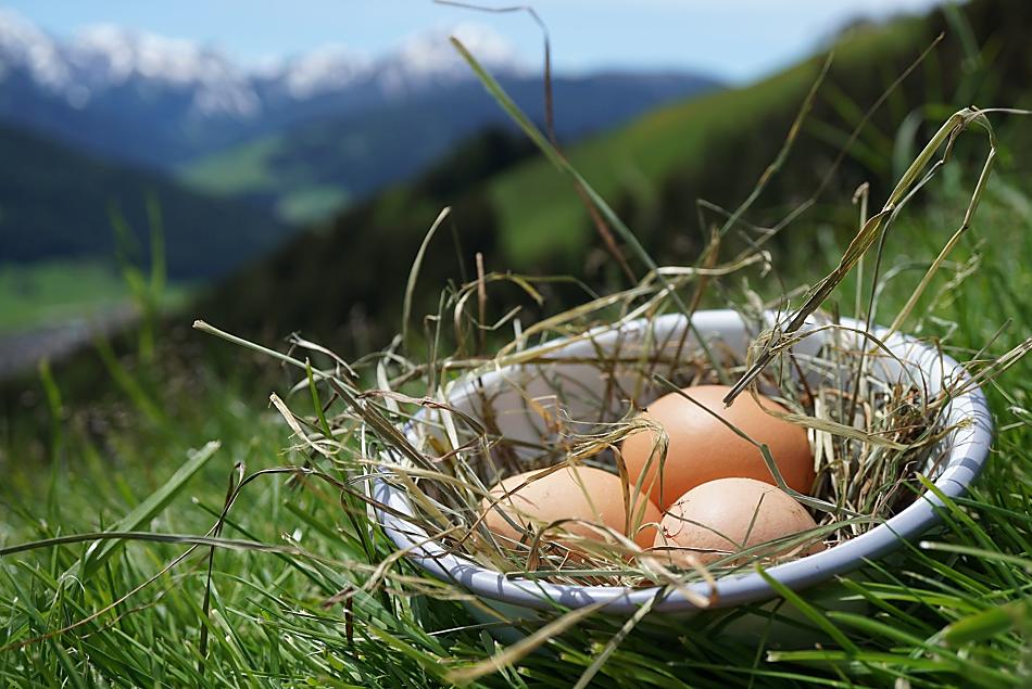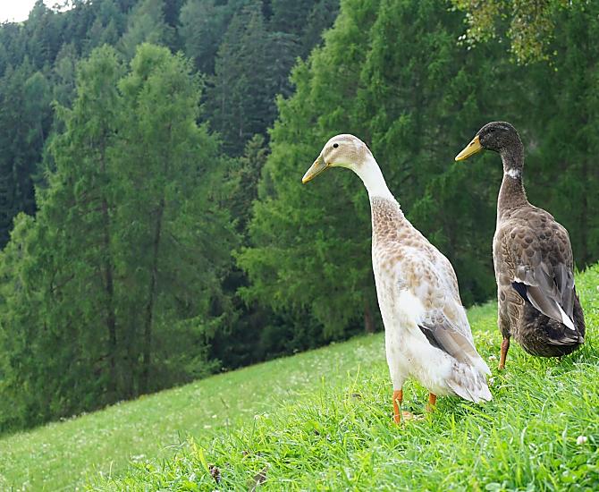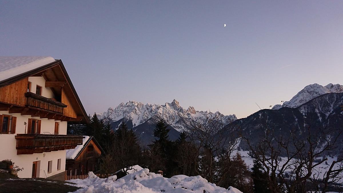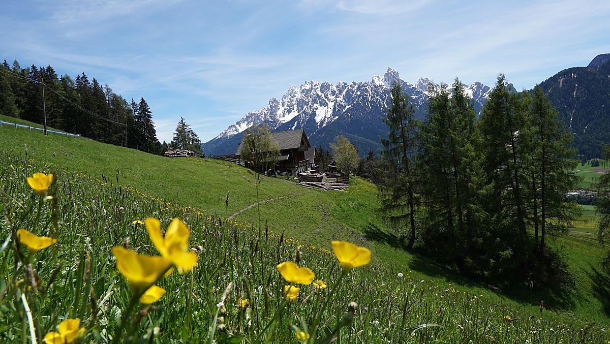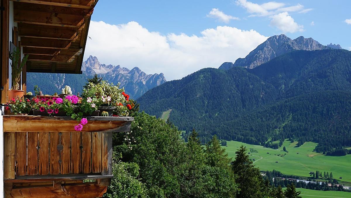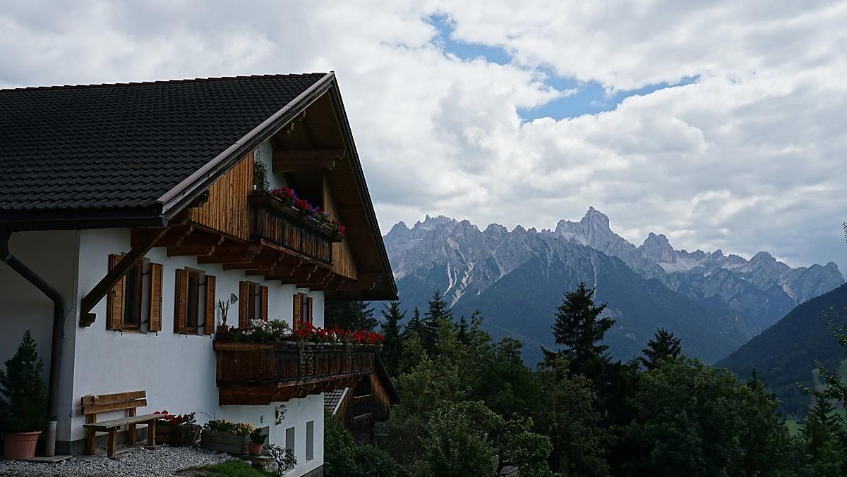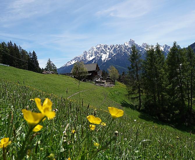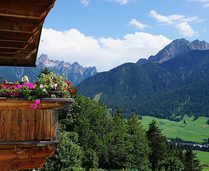 Our farm is situated on a sunny mountain slope above Toblach at an altitude of 1440 m. It is surrounded by blooming flower meadows and dense forests. The place is particularly quiet and far from the street and traffic. The farm consists of two buildings, the dwelling house and the feeding house. The buildings face south and offer views of the Dolomites and the villages of Toblach, Niederdorf and Prags. This makes our farm the right place to relax far away from everyday stress and noise.