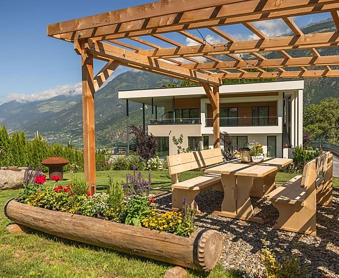 Relaxation in the midst of nature. Welcome to newly opened Ortsriedhof farm, your charming retreat in Tarsch. In the midst of picturesque landscapes, surrounded by majestic mountains and the green orchards of the Vinschgau, we invite you to enjoy the beauty of nature to the full on our farm. Our surroundings radiate peace and relaxation, far away from the hustle and bustle of everyday life. With us you will not only find accommodation, but a home from home where you can enjoy the warmth and beauty of country life. We look forward to welcoming you as our guests and making your time out an unforgettable experience.