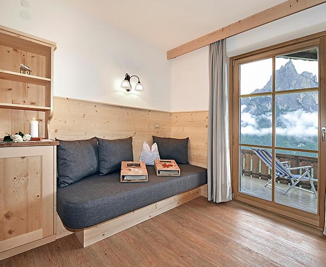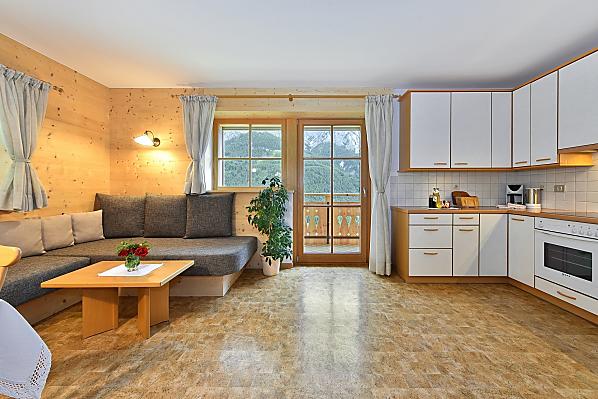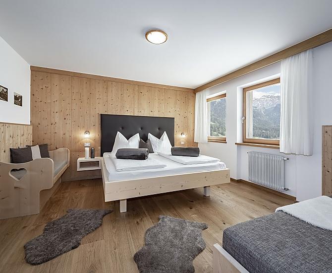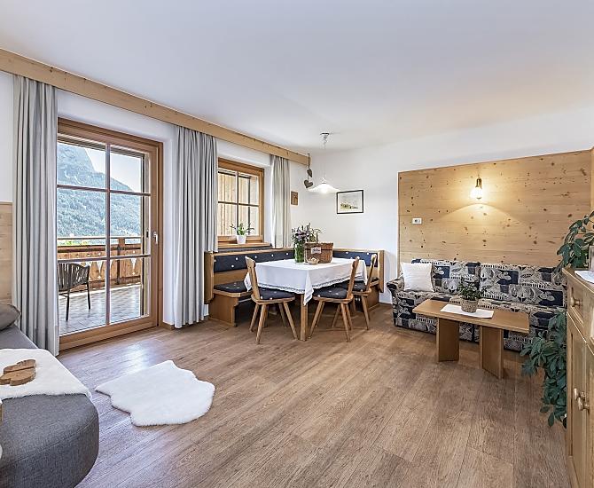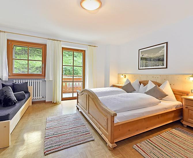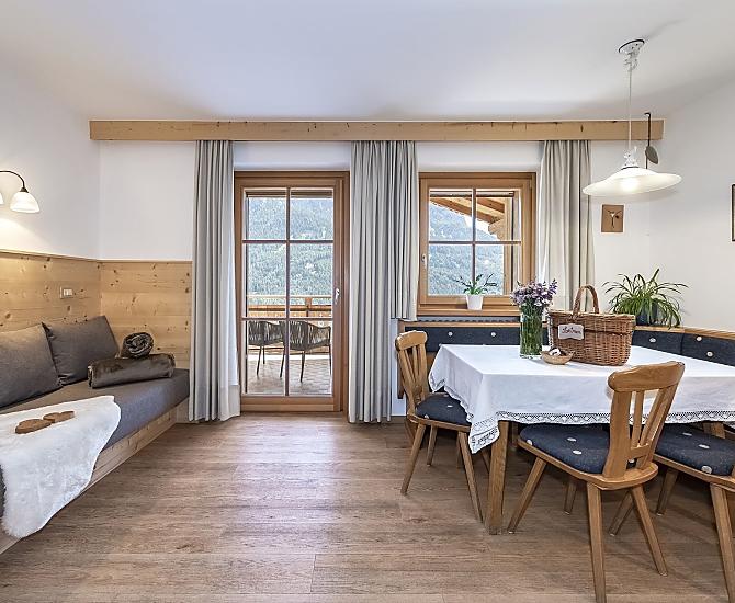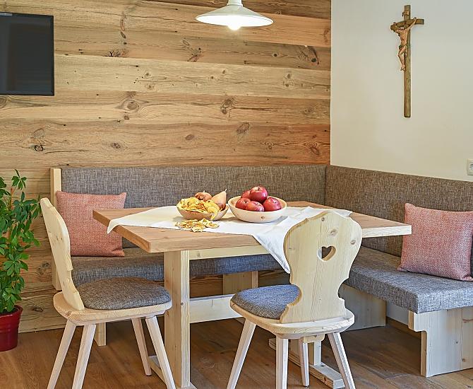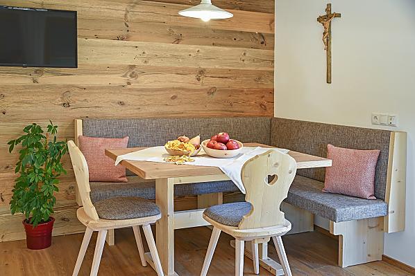 Our picturesque Paten farm is beautifully situated in the small district of St. Valentin, on the sunny side of Kastelruth. Its unique, particularly quiet and very sunny location offers a wonderful and breathtaking panoramic view of the surrounding mountains. Nestled in the middle of green meadows, our farm offers plenty of space for rest and relaxation in the cozy and lovingly furnished holiday apartments. Many small retreats on the farm invite you to unwind and switch off from the often hectic everyday life. The proximity to the animals, our grandmother Maria Anna's kitchen, the farm's own products, the wonderful panoramic location, visiting the stables or feeding the animals make your farm holidays on our farm a very special experience for you and your family. It is very important to us that you feel at home with us, that you can enjoy your holiday, gather lots of impressions and relax. We look forward to you!