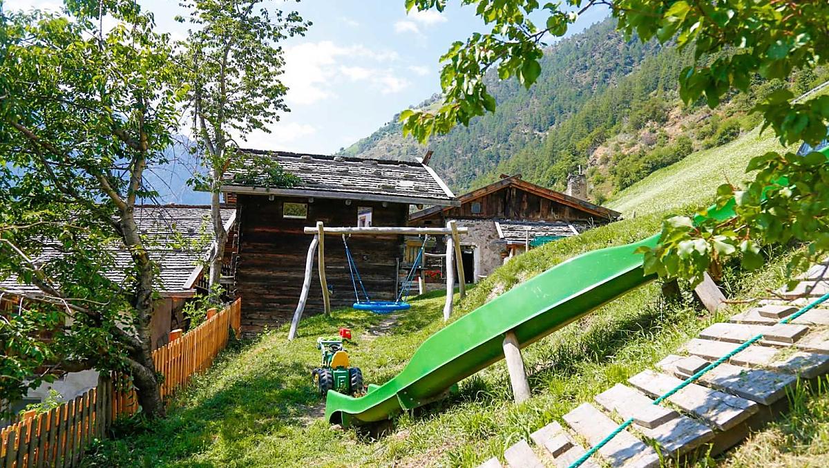 From Naturns first take the modern cable car (valley station on the western edge of the village in the district of Kompatsch) up to Hof Unterstell (1282 m; Jausenstation). Then walk up to the fork in the road, now follow trail number 10 to the left, partly on footpaths, partly on the farm track up to Patleidhof.