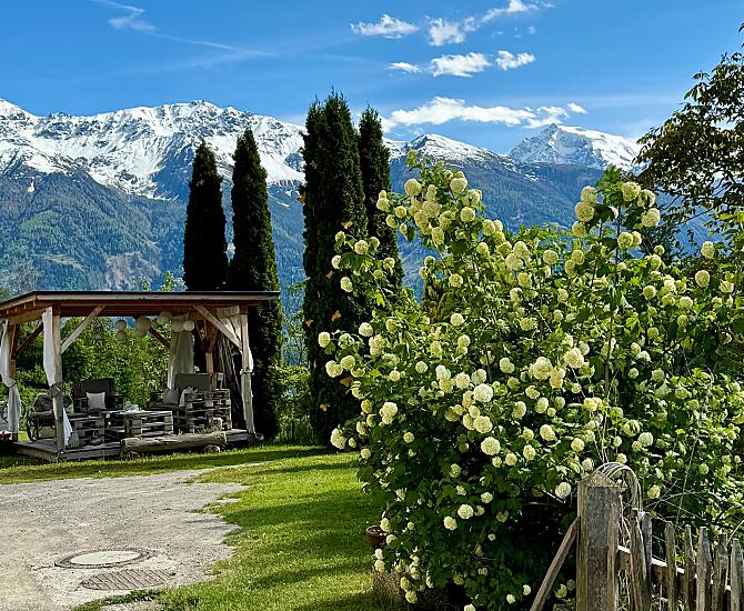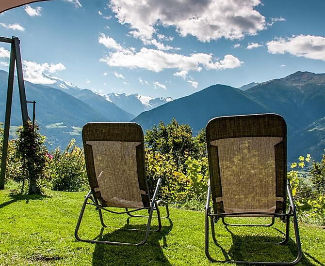 Beautiful farm in a very sunny location with a wonderful panoramic view of the Ortler massif and eight different villages.