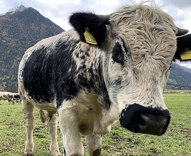 Our farm is a member of the breeding organisation for "Pustertaler Sprinzen", a local breed of cattle that almost completely died out in the interwar years. We also keep other endangered breeds.