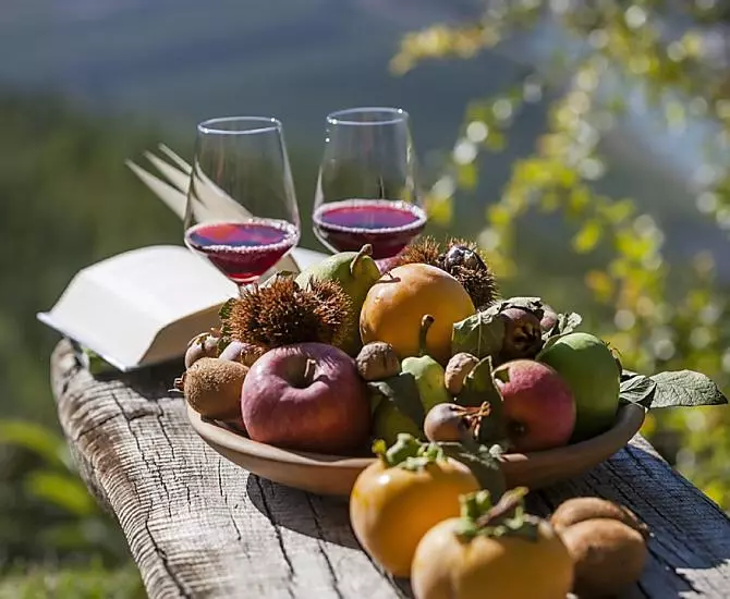- fresh fruit in season (apples, berries, cherries, chesnuts, nuts, peaches, pears)