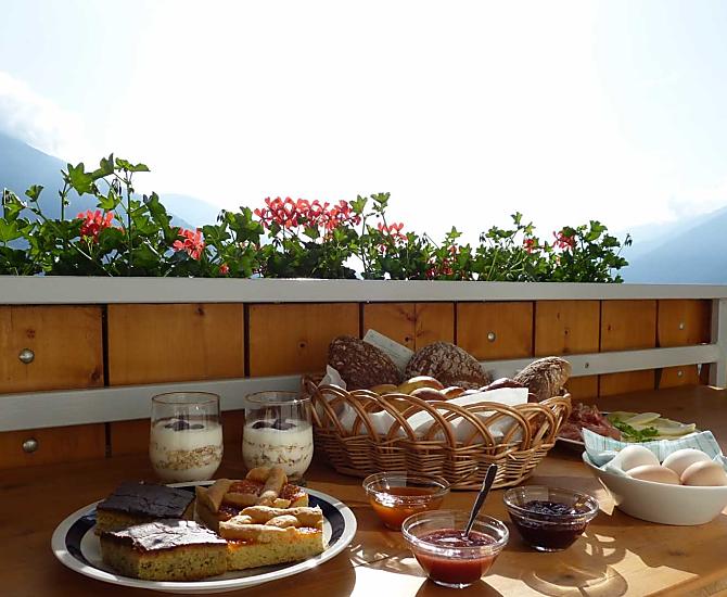 - Farm's own products at breakfast: milk, yoghurt, cheese, butter, speck, sausages, eggs, fruit jams, cordial, dried fruit, pickles, seasoning, bread, baked goods, fresh vegetables in season, fresh fruit in season