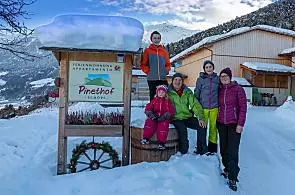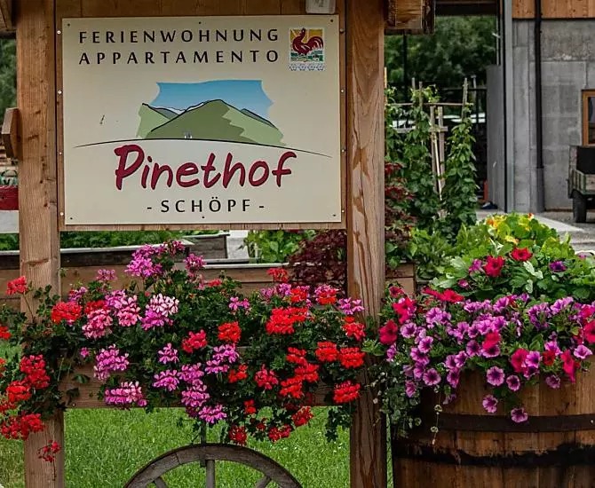 Coming from the Reschen Pass, drive to Glurns. From there towards Prad am Stilfser Joch. At the first roundabout, turn right towards Lichtenberg, then follow the signs to Pinethof. Approx. 2 km uphill to the Pinethof-Schöpf farm.