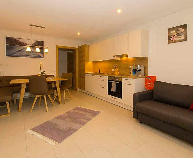 Enjoy freedom, peace, relaxation and fresh mountain air. Visit us on our farm, the beautiful high plateau "Pinet" far above the villages of the valley. Enjoy the panoramic view in the direction of St. Christina church, which invites you to take a short walk and visit the idyllic little church on a sunny afternoon. Our farm is ideally located to start hikes and mountain bike tours right from the front door. One of these popular hiking trails is also an adventure trail for children: the Gumperle trail.