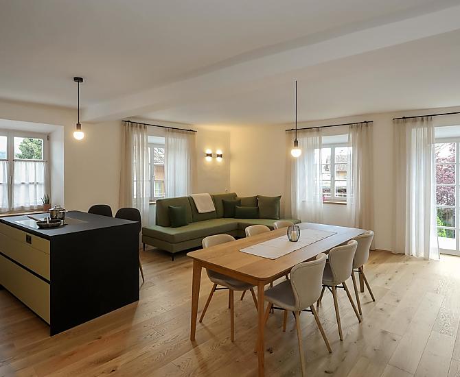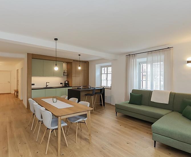 Wine and fruit farm in the heart of the Überetsch between the main town of the municipality of Eppan, St. Michael and the wine village of St. Pauls, embedded in vineyards. The Pizzol-Hof impresses with its harmonious building ensemble, consisting of the 400-year-old residence, called Doctor's House, the lovingly renovated barn, today a guest house, and the new building with four holiday apartments. The adjacent and other vineyards in Eppan and Kaltern as well as orchards for growing apples belong to the farm. The guests enjoy the atmosphere of our naturally grown courtyard with the vegetable garden, herbs and flowers and the children's playground. Two families live on the farm, the young farmer with his wife and two children and the parents.